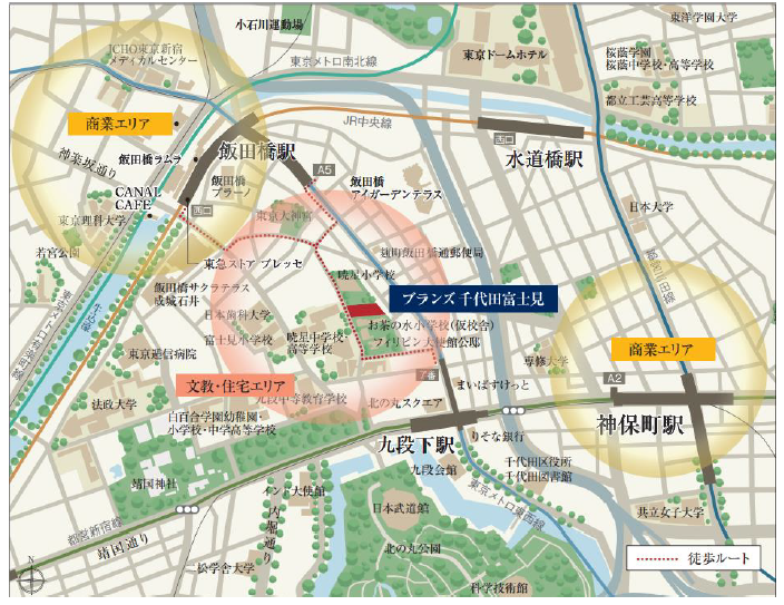 外堀と内堀に囲まれた千代田富士見は、歴史の⾯影の中に豊かな緑を受け継いできた古くからの邸宅地であり、この立地にふさわしい設備とサービスの導入により、 長期的な安心と資産性を高めた物件となっています。