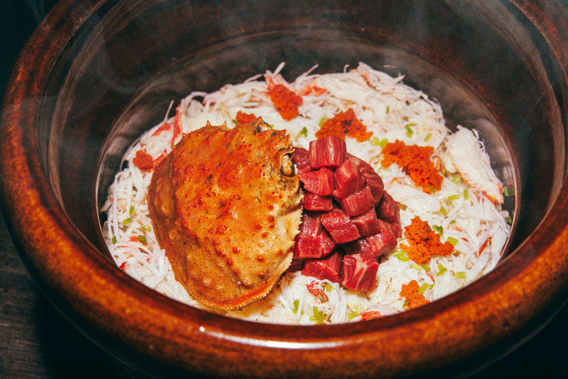 せいこ蟹と牛ヒレの土鍋ご飯 (冬のQコース) 【うしごろエス】
