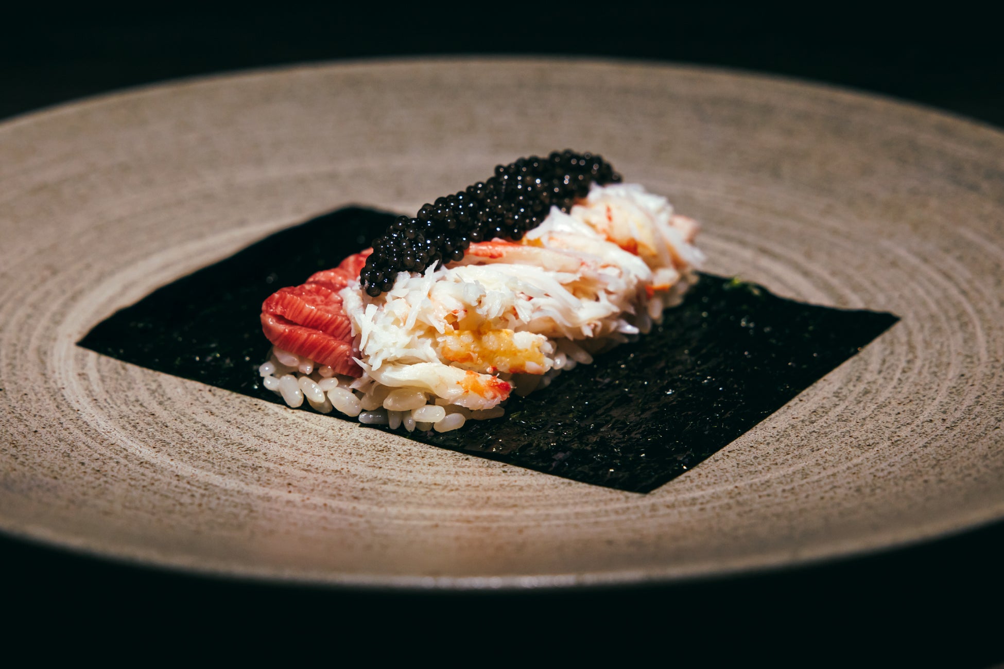 キャビアとずわい蟹、厳選部位の手巻き (冬のKコース) 【うしごろエス】
