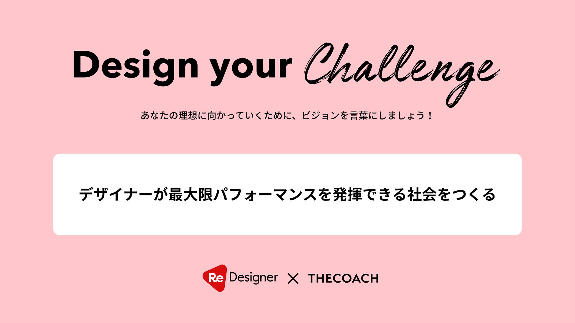 このような状況を受けReDesignerは、デザイナーの長期キャリア構築支援強化を目的にTHE COACHと提携し、独自に共同開発したコーチングサービスの提供を開始します。THE COACHは「コーチングマインドを社会に広げる」というミッションのもと、オンラインコーチングスクールの「THE COACH Academy」とコーチングサービスの「THE COACH Meet」の運営を行っています。今回の提携により、デザイナーがキャリア形成を通じて内面に向き合うための支援を行うことで、デザイナー自身がパフォーマンスを発揮できる環境を正しく選択し、デザインによる価値創造が広がる社会を目指します。