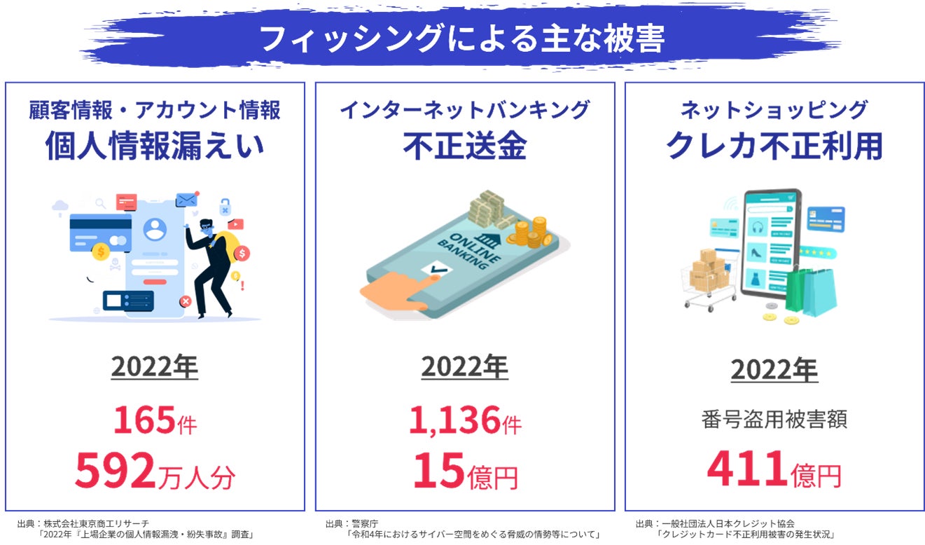 安全なネット通販のインフラづくりに貢献するかっこ株式会社(本社:東京都港区、代表取締役社長CEO : 岩井裕之、証券コード:4166、以下 かっこ)は、急増するフィッシング詐欺に対し、情報詐取の手段であるフィッシングメールやサイト、さらに詐取した個人情報で行うなりすましログインをワンストップで対策できるフィッシング対策パッケージ「鉄壁PACK for フィッシング」を2023年6月30日(金)付でリリースすることになりましたので、お知らせいたします。また、本リリースに合わせ、フィッシング対策に関するウェビナーを7月27日(木)に開催いたします。対策への理解を深めていただく機会として、是非ともご参加ください。
