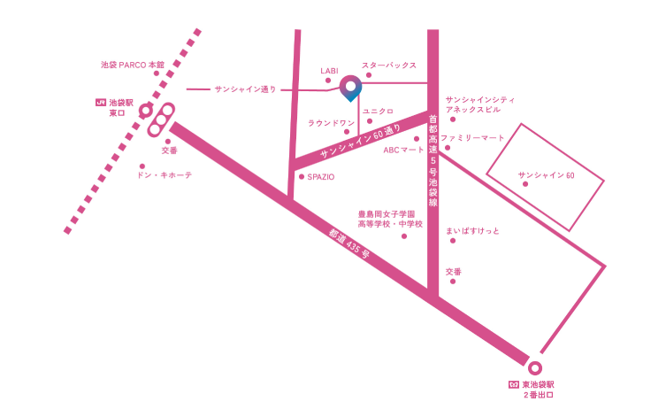 アクセス:JR山手線「池袋」駅徒歩3分、東京メトロ有楽町線「東池袋」駅徒歩7分