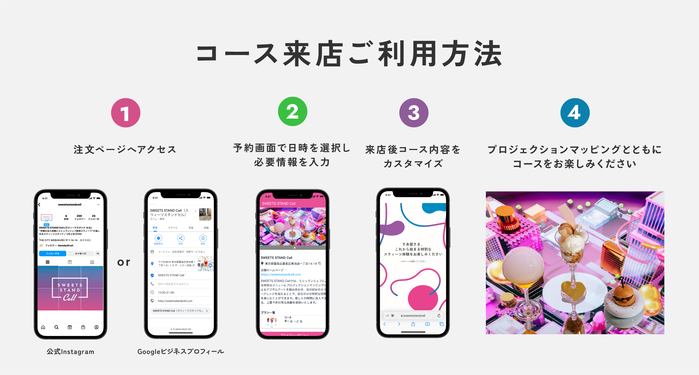 ・指定した日時に来店後、ご自身のスマホでコースの内容をカスタマイズ