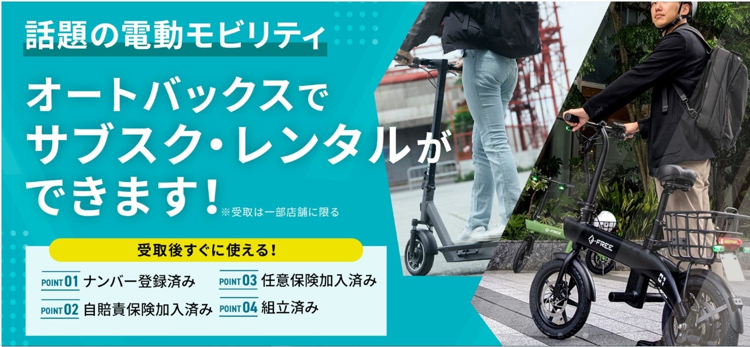 株式会社オートバックスセブン(代表取締役 社長:堀井勇吾)は、株式会社TENT(代表取締役:松田基臣)が運営するレンタル&サブスクモール「カウリル」に出店し、電動モビリティのサブスクリプション・レンタルサービスを開始しました。