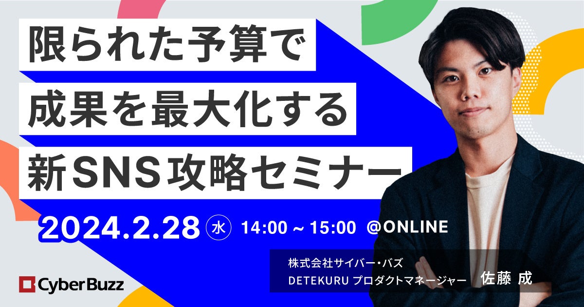 サイバー・バズ、クリエイターマッチングサービス 「DETEKURU」より「限られた予算で成果を最大化する新SNS攻略セミナー」を2月28日(水)に開催!