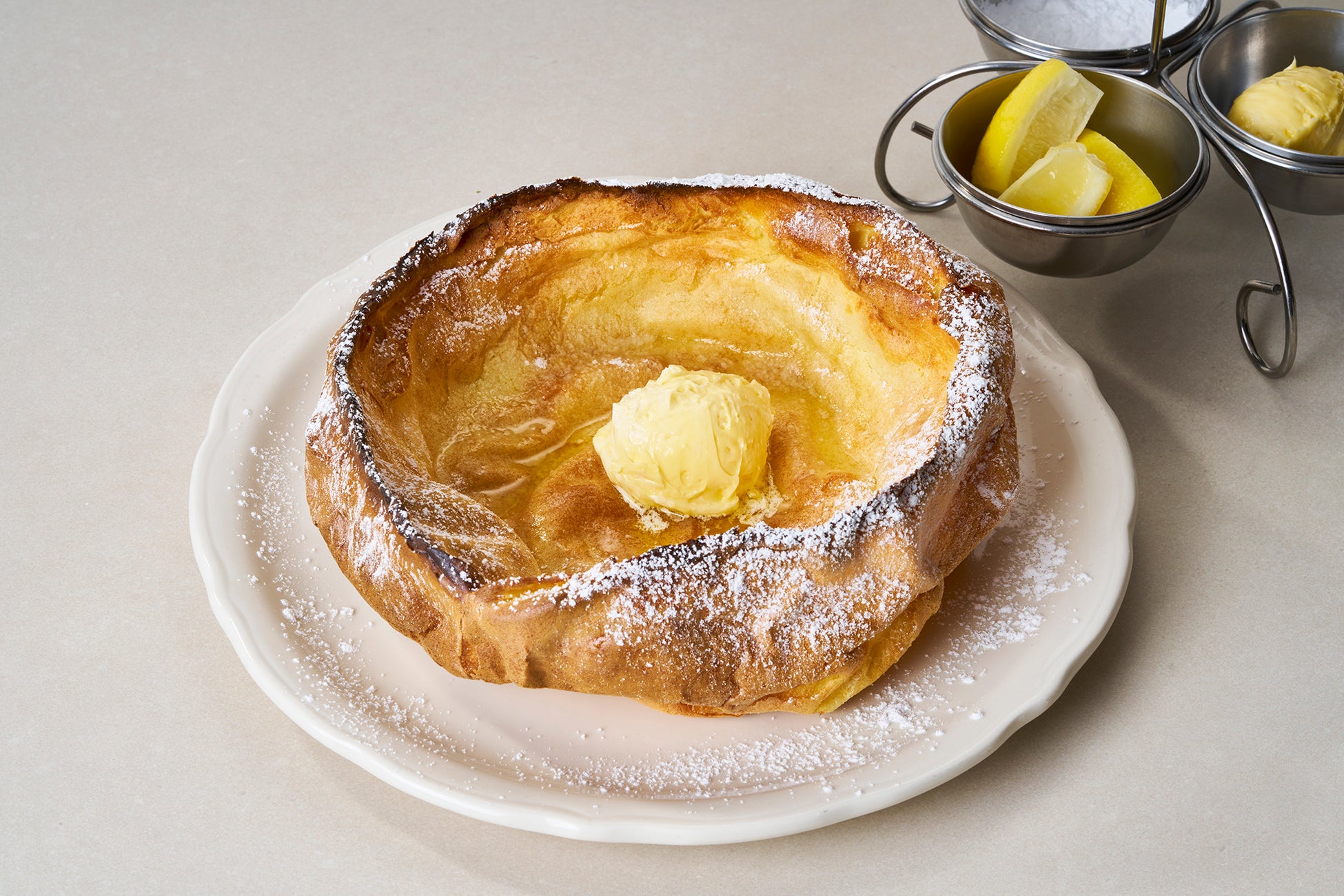当時から今も変わらない味で愛されているのが、オーブンでじっくり焼き上げる「ダッチベイビー」です。生地はジャーマン生地と呼ばれる、サクサク、ふわふわな不思議な食感です。