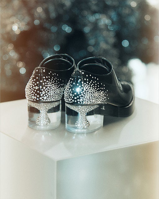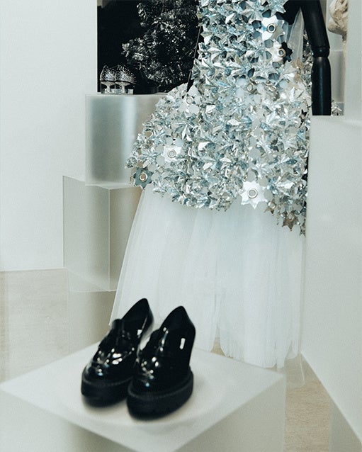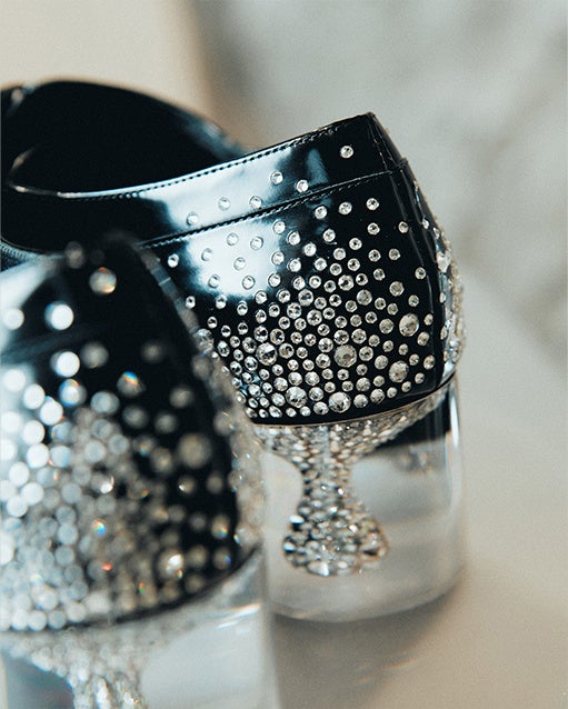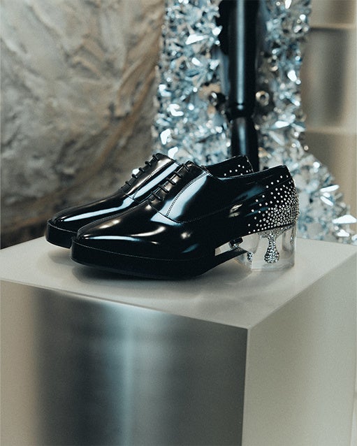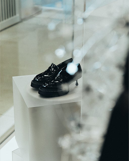 インスタレーションでは、JIMMY CHOO のシグネチャーであるドロップヒールを、透明なブロックの中に閉じ込めた Crystal Shoe(クリスタルシューズ)のヒール部分から着想を得たアクリルキューブのプリンスがスペースを彩り、Jimmy Choo noir kei ninomiya の美しいアイテムたちは、noir kei ninomiya の2026年春夏コレクションと共に展示されます。
