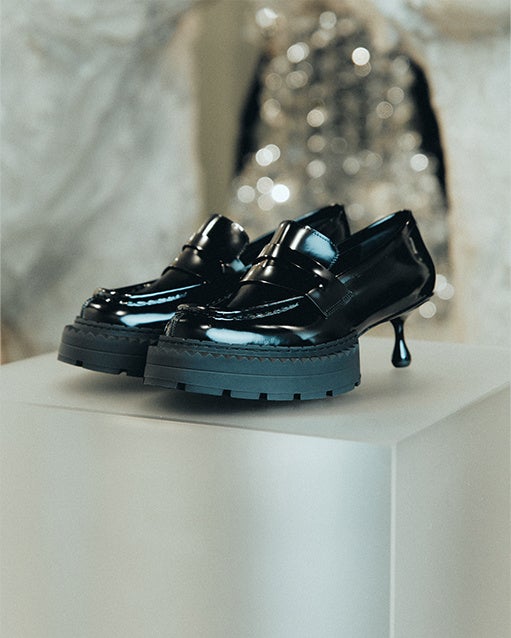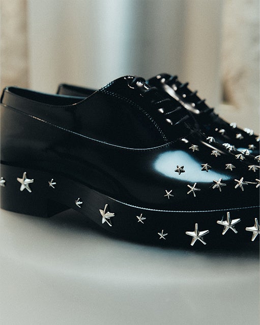 Jimmy Choo noir kei ninomiya は JIMMY CHOO の代名詞と言えるモダンなフェミニティとクラフツマンシップ、そして noir kei ninomiya 独自のデザインアプローチを特徴づけるアバンギャルドなイノベーションを融合し、予想を超越するダイナミックなハイブリッドが誕生しました。