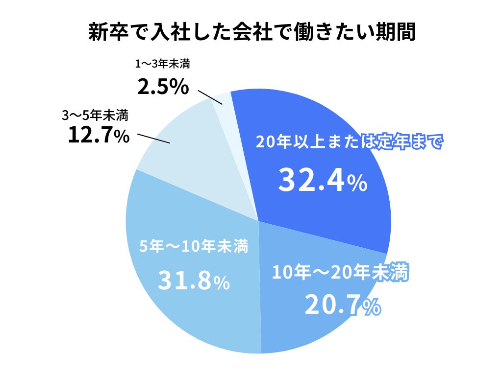 入社した会社で働きたい期間は「20年以上または定年まで」が最多(32.4%)