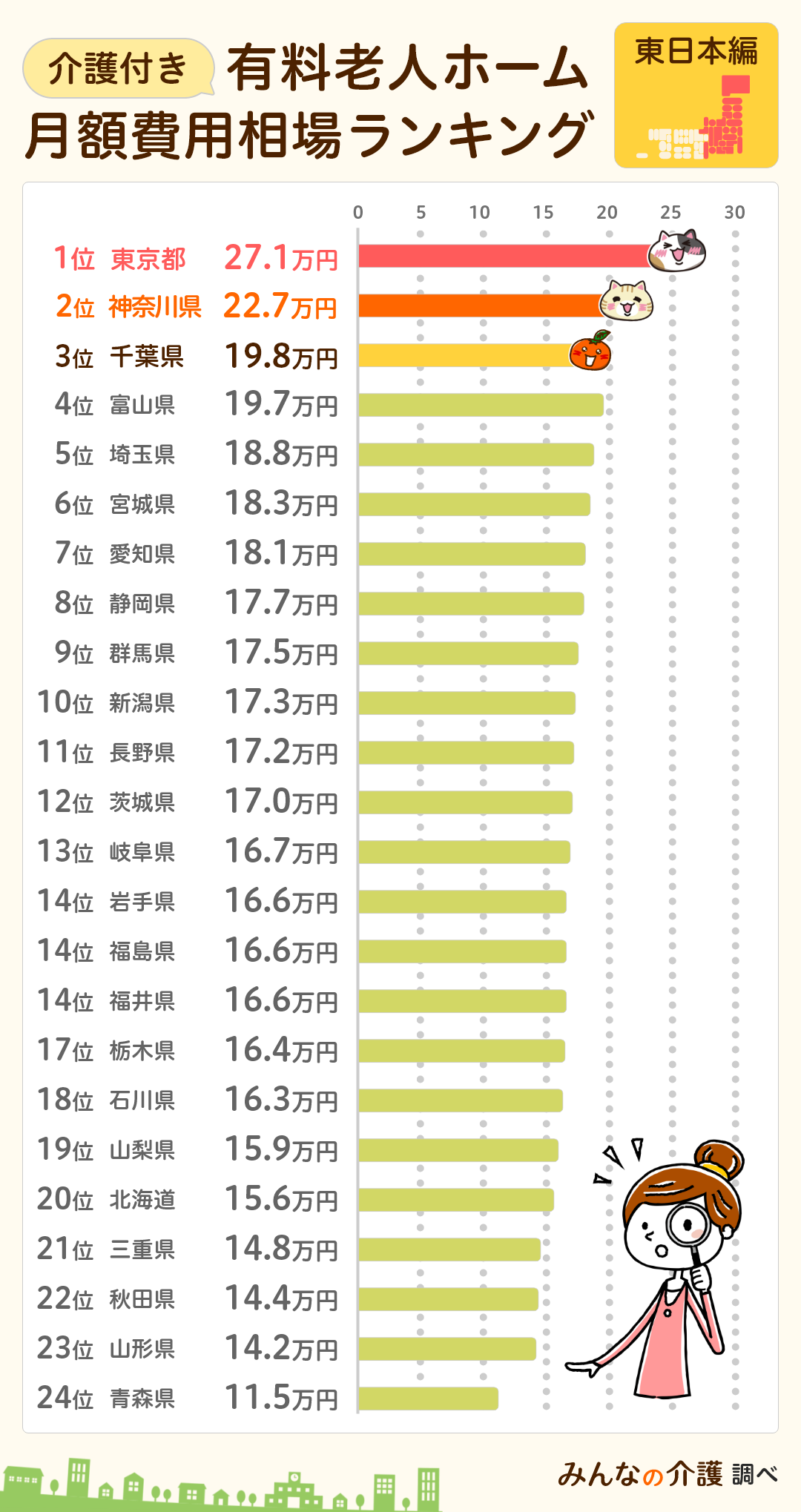 東日本の介護付き有料老人ホームの月額費用相場ランキング