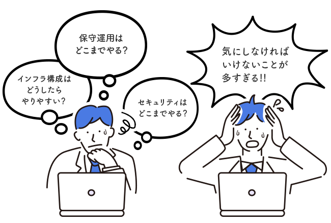 一方、不確実性が高く変化の激しい現代における新規事業開発においては、顧客や利用者からのリアルな反響やフィードバックに基づいて、スピーディーに仮説検証や事業課題の解決・改善を繰り返すプロセスが必要不可欠であり、新規事業開発ではサービス開発が先行・優先され、基盤となるインフラの構築・運用・保守・セキュリティ体制・スケーラビリティ等をどこまで作り込むべきか判断が難しいケースが大半です。