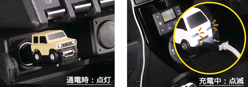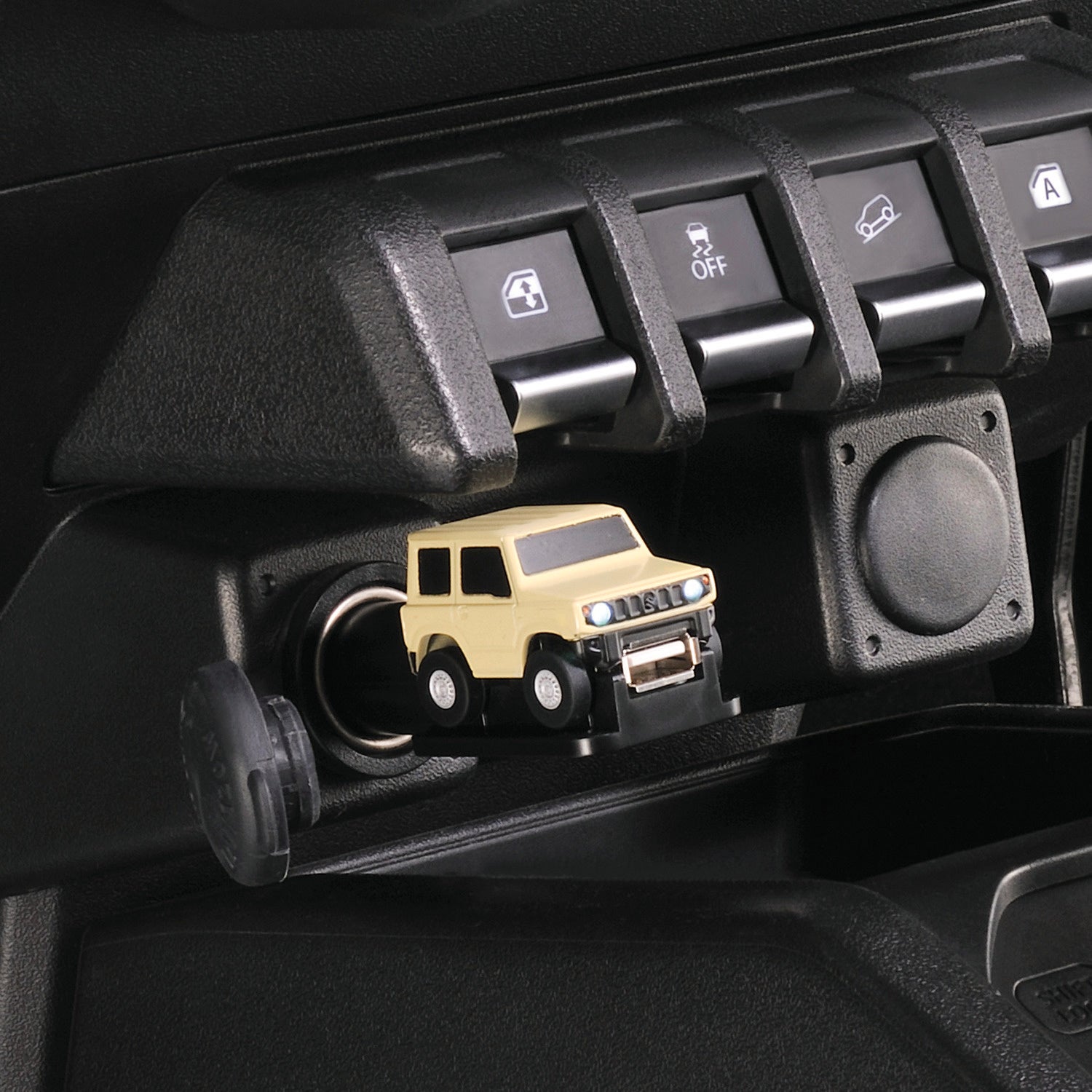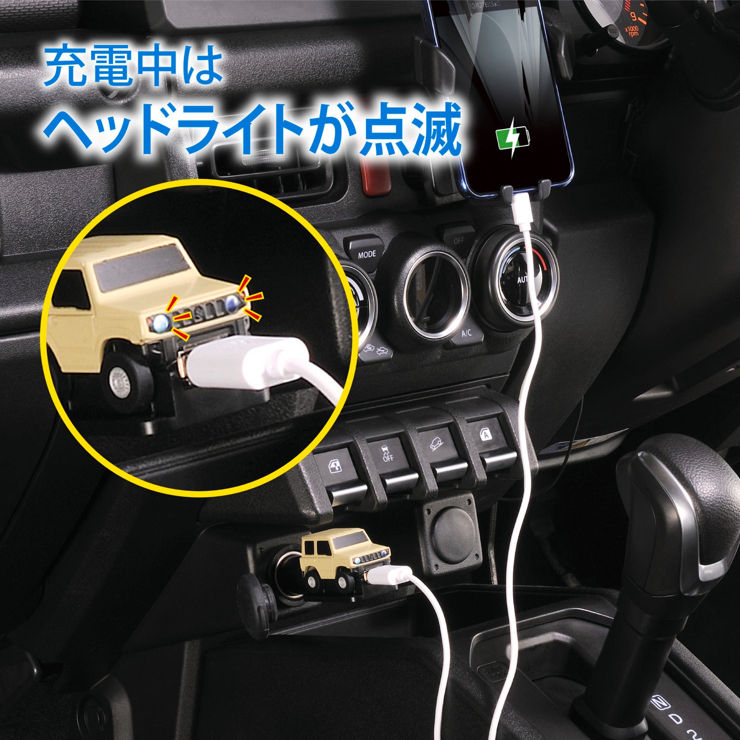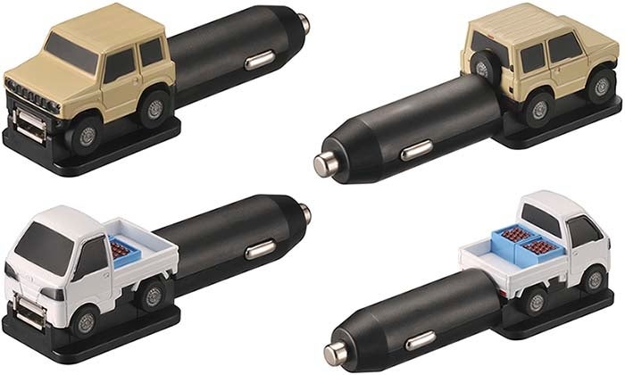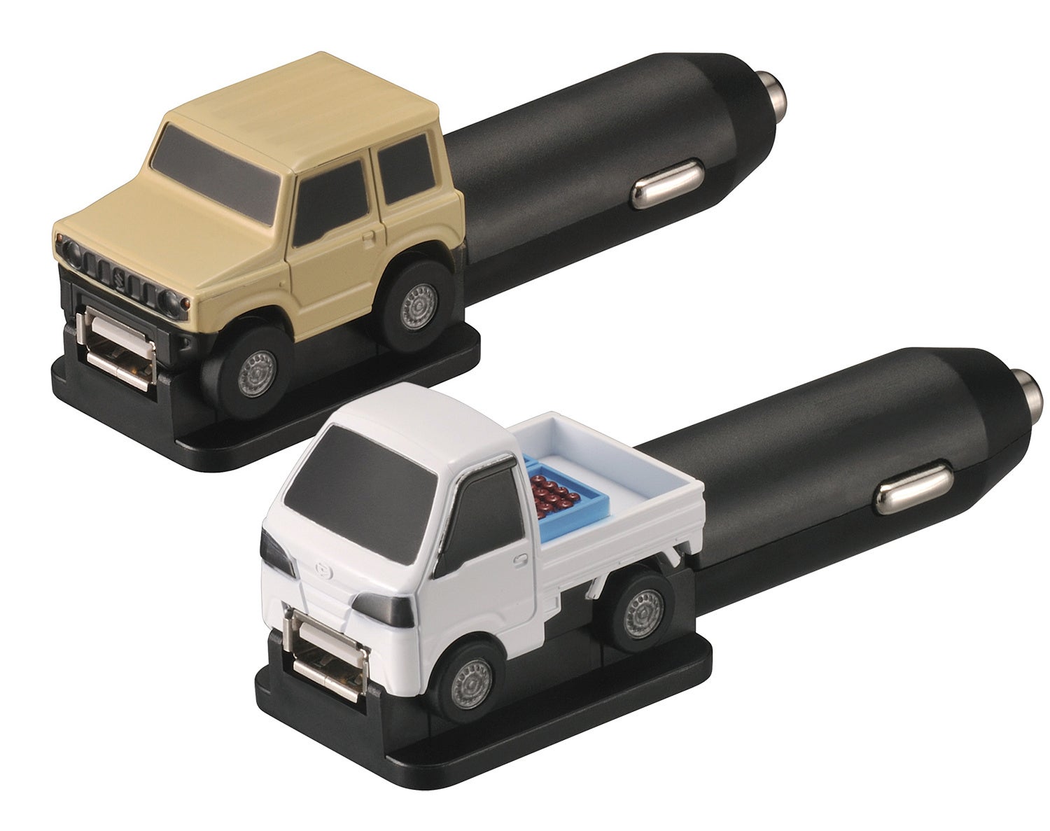 ヘッドライトが光る、ジムニーと軽トラのミニチュアUSBチャージャー発売