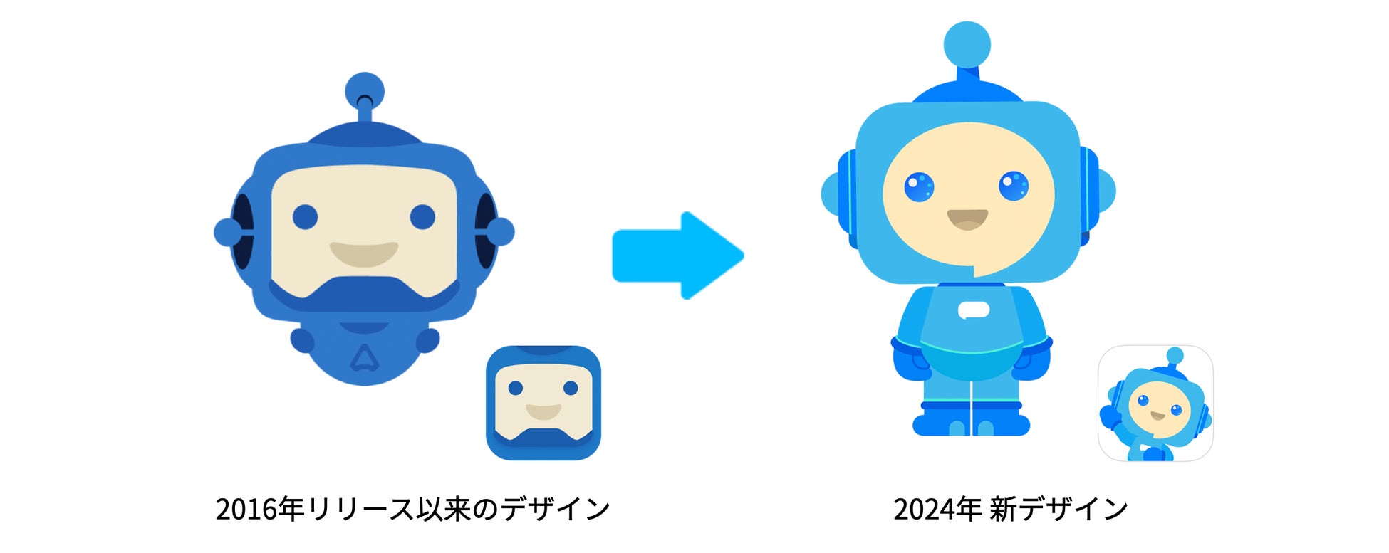 より親しみやすい存在を目指し、ロゴと同色の「スカイブルーのロボット」に