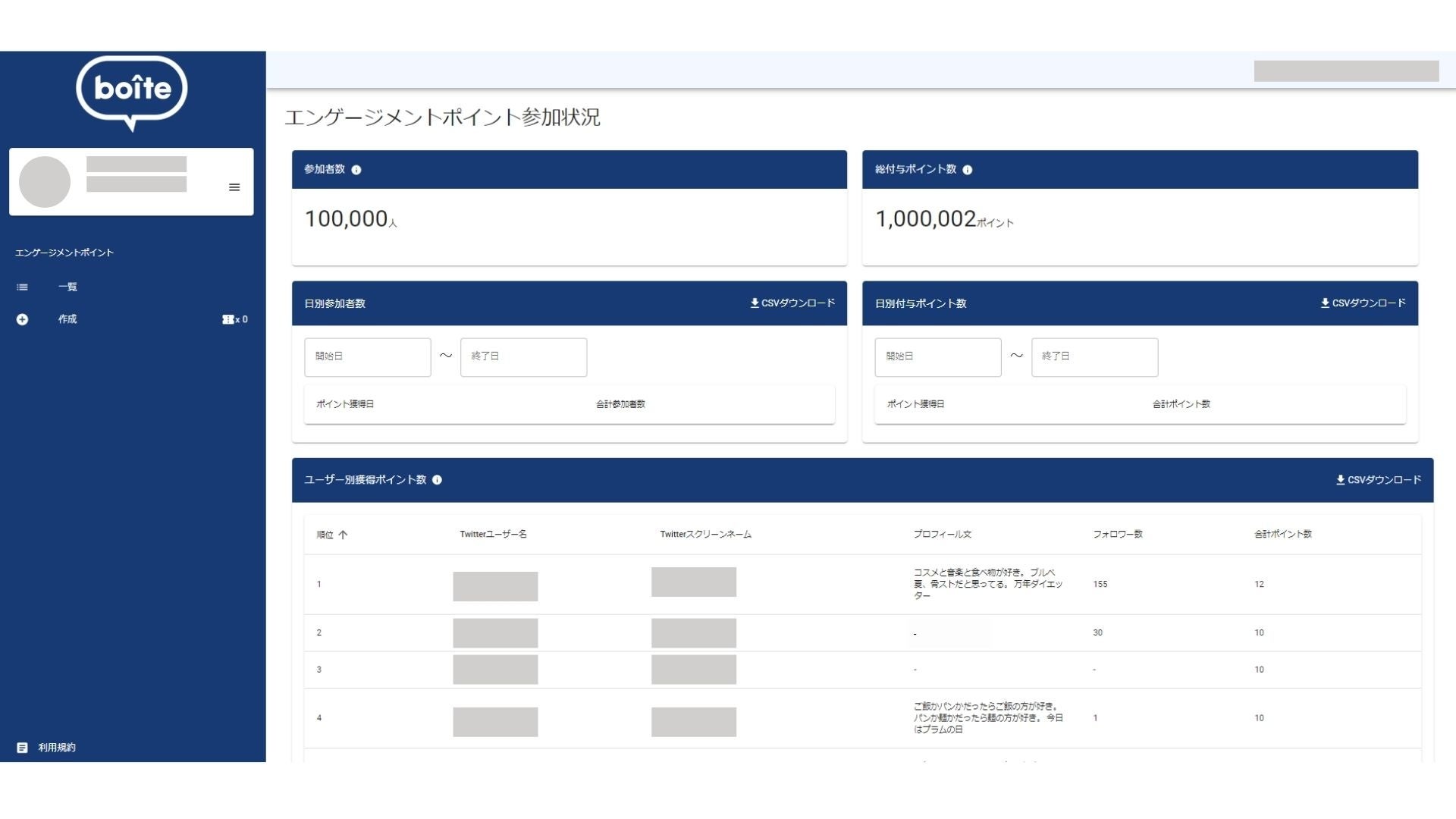 Twitterコミュニケーションキャンペーンツール『boite(ボワット)』エンゲージメントポイント機能の企業向け管理画面をリリース