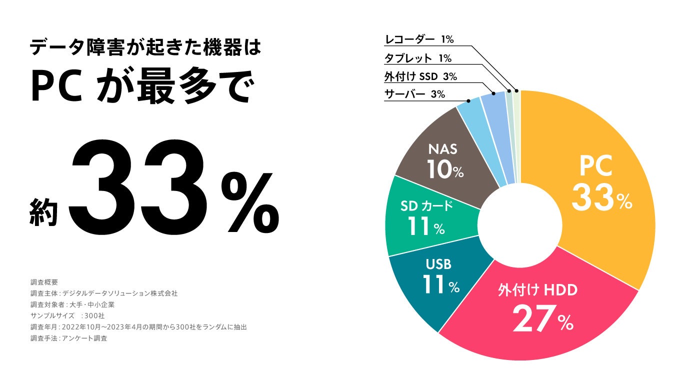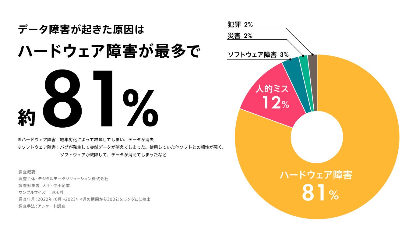 当社へご相談いただいた企業300社を対象に、データが消失し、復旧のご依頼をいただいた背景を明らかにすべく、調査を行いました。