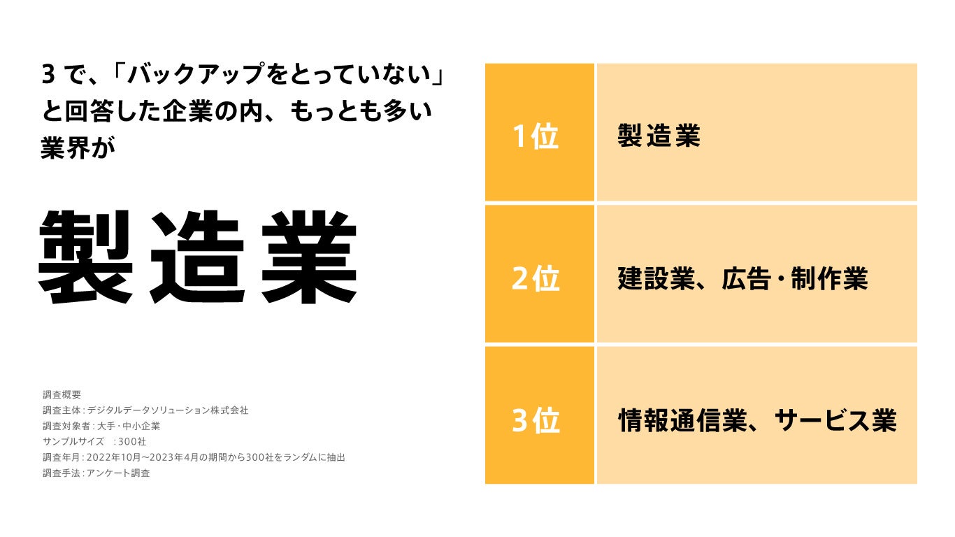 <社内データのバックアップをとっていない企業が約89%>デジタルデータソリューションが企業のデータバックアップに関する調査を発表