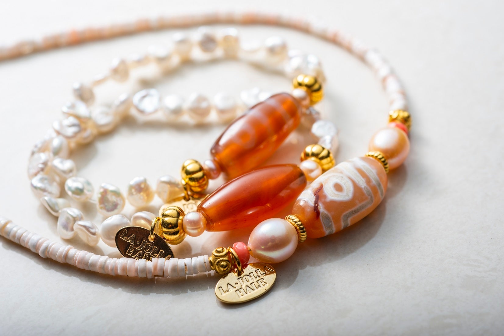 カリフォルニアの「ラ・ホヤ」と、ハワイの「ハレ」を合わせて「宝石の家」という独自の世界観を生み出しました。洗練されたデザインのストーンジュエリーをはじめ、神秘的な力が宿るとされる天然石との運命の出会いが待っています。美しいものを目にする喜び、手に取り身に付ける楽しみ、お買い物を心ゆくまで満喫する贅沢さ…ファッション性にもこだわったストーンジュエリーの数々をぜひご覧ください。