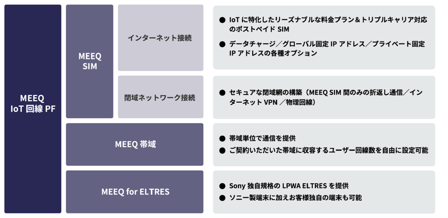 ・「長距離安定通信」「高速移動体通信」「低消費電力」といった特長を活かしたソニーオリジナルのLPWA、ELTRES™を提供