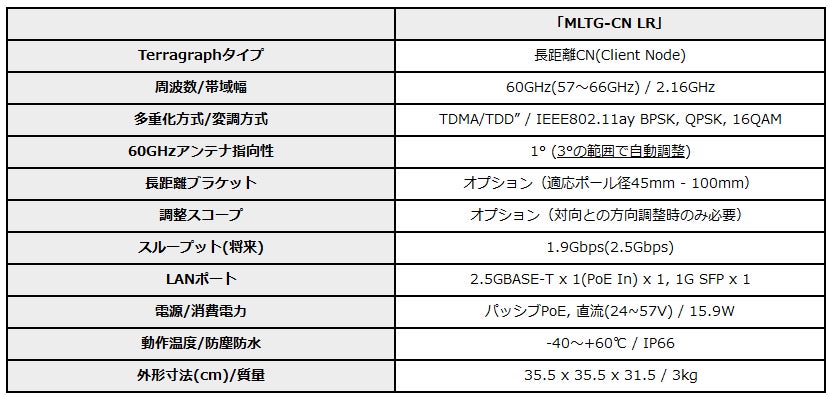 Terragraph準拠 長距離無線LAN製品「MLTG-CN LR」の販売を開始