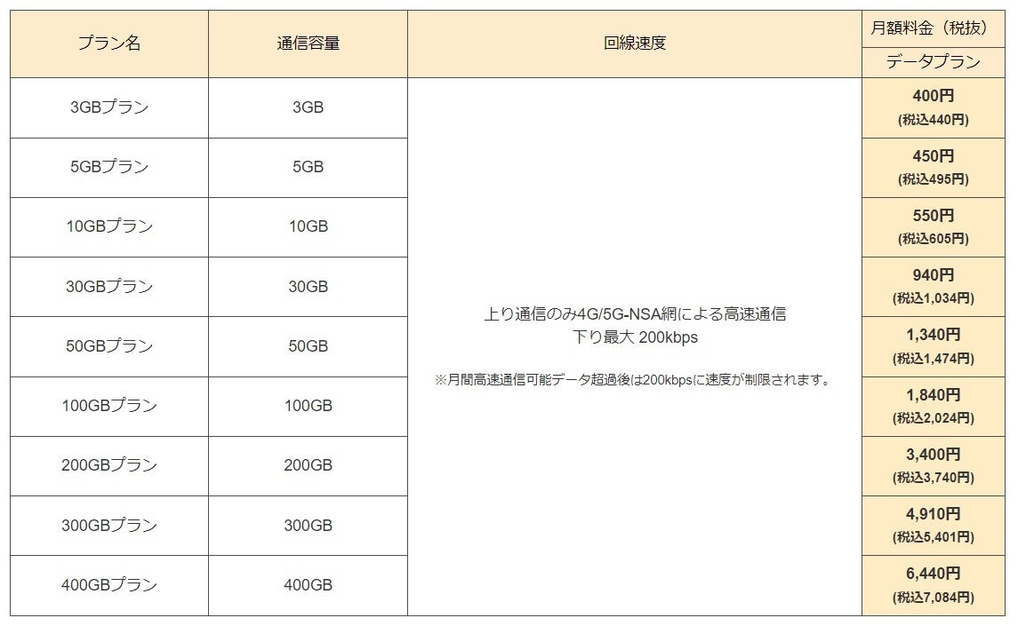 ※月間高速通信可能データ超過後は200kbpsに速度が制限されます。