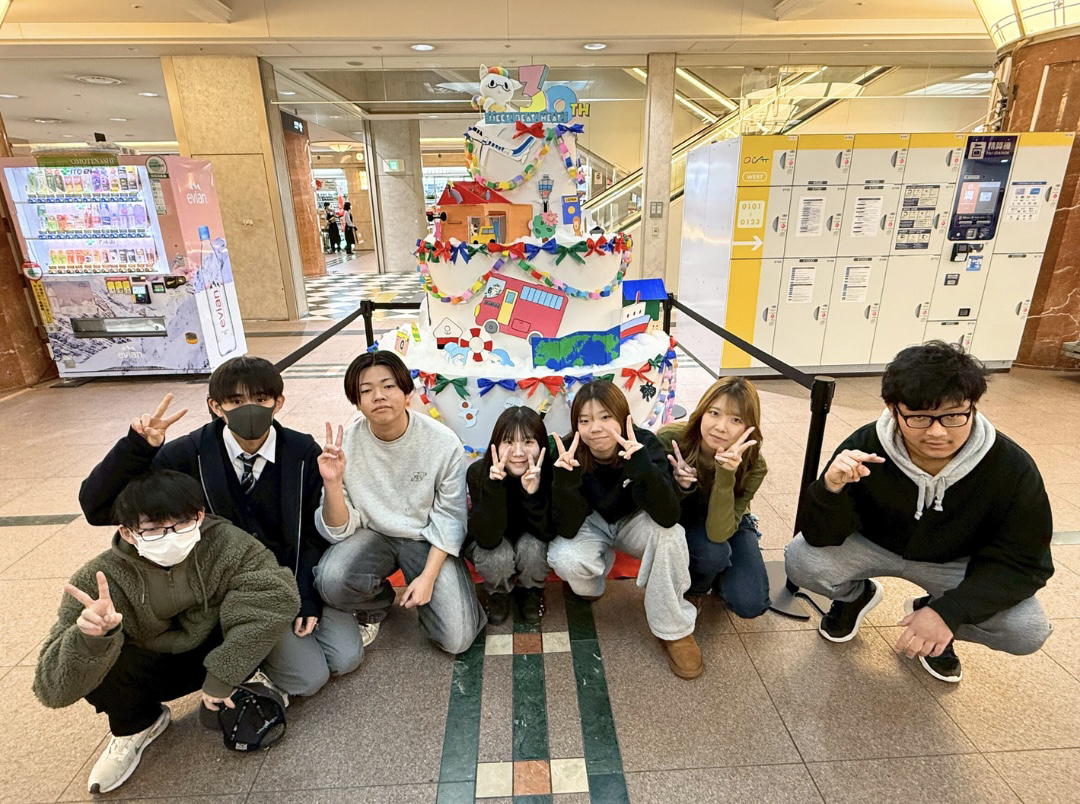 制作を担当したのは、芸術やデザインに関心を持つ当校の生徒たちです。「学びの場として日々利用しているOCATへ感謝を伝えたい」「地域の方々や利用者の皆様に、驚きと祝福の気持ちを届けたい」という想いから、高さ約2mにおよぶ3段重ねのバースデーケーキ型のデザインを考案しました。