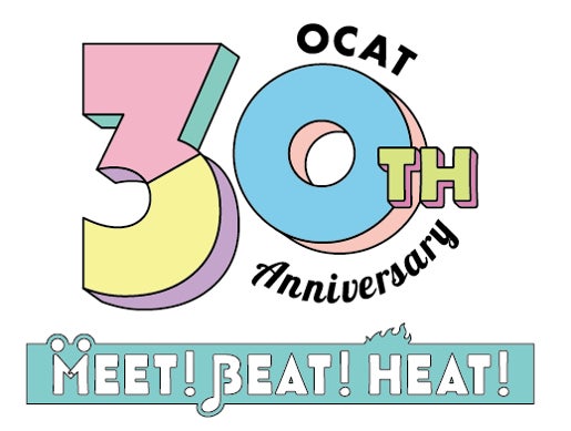完成したモニュメントには、OCATのロゴカラーであるピンク・黄色・青のリボンや、「30TH ANNIVERSARY」のロゴプレートも飾られ、華やかな仕上がりとなっています。