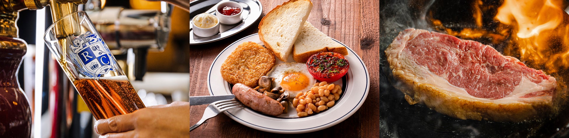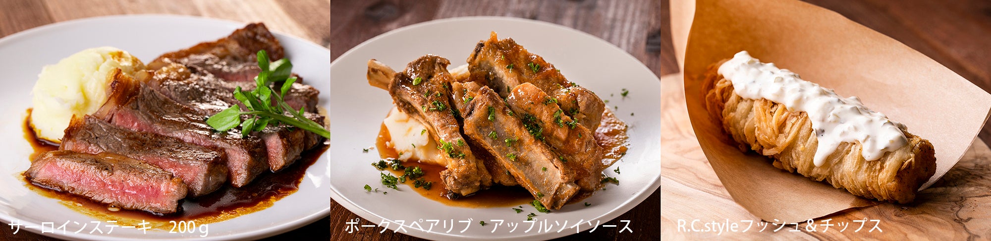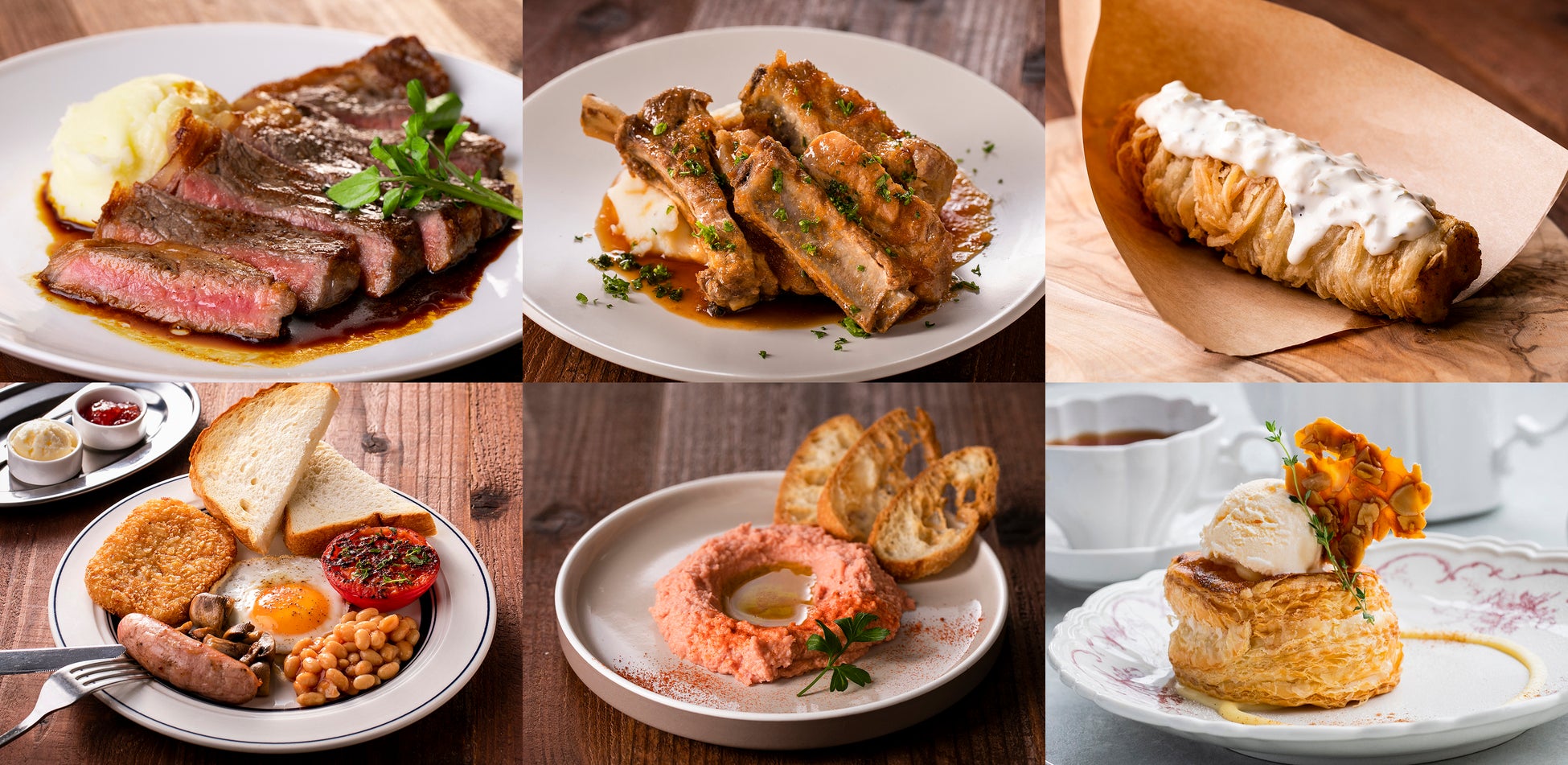 当店では、“いま”と“むかし”の英国体験をコンセプトに、最新のモダンな英国料理も取り入れ、個性豊かなメニューをラインナップしています。英国の食習慣のひとつで日曜のランチに食べるロースト料理「サンデーロースト」をはじめ、見た目も食感もアレンジした「R.C. style フィッシュ&チップス」などパブの定番メニューから、「ひよこ豆のフムス」、インドのスナック「マサラパパド」などスパイスを使ったアペタイザーまで、多様なメニュー構成となっています。また、英国の伝統的な朝食「フル・ブレックファースト」 が一日中食べられます。午後のティータイムには、注文を受けてから焼き上げるこだわりの「アップルパイ」などのスイーツをお楽しみいただけます。