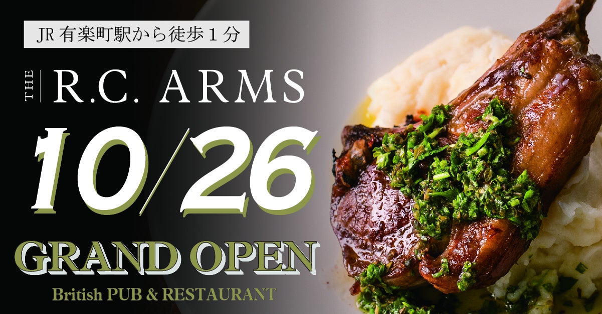 『焼鳥 ハレツバメ』『釣宿酒場 マヅメ』『鮨ト酒 日々晴々』など続々と新業態を展開している株式会社ダイナック(本社:東京都港区、代表取締役社長:秋山武史)は、新たなブリティッシュパブ&レストランブランド 『THE R.C.』を10月より展開すべく、そのフラッグシップショップとして『THE R.C. ARMS 有楽町店』を、10月26日(水)にオープンいたします。