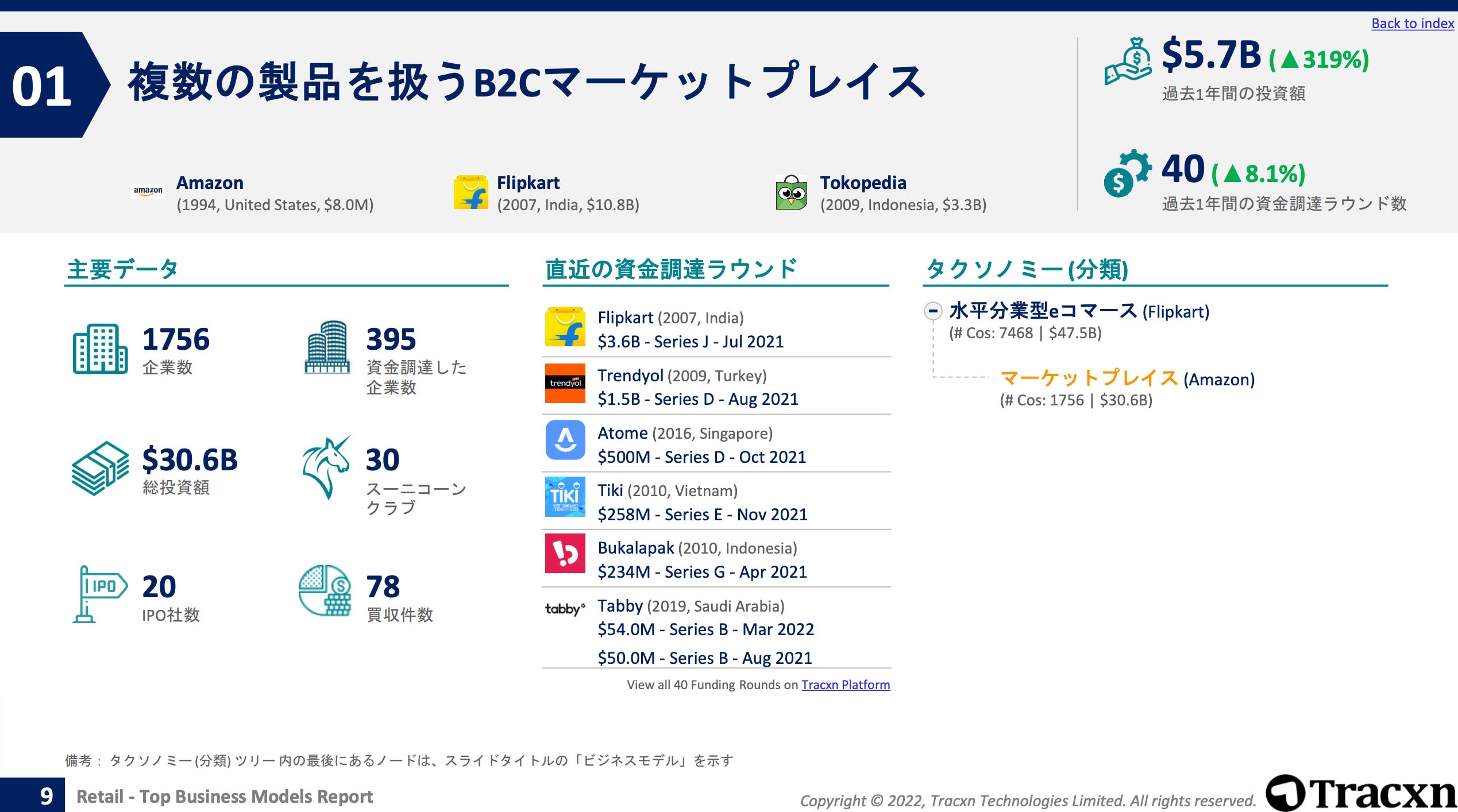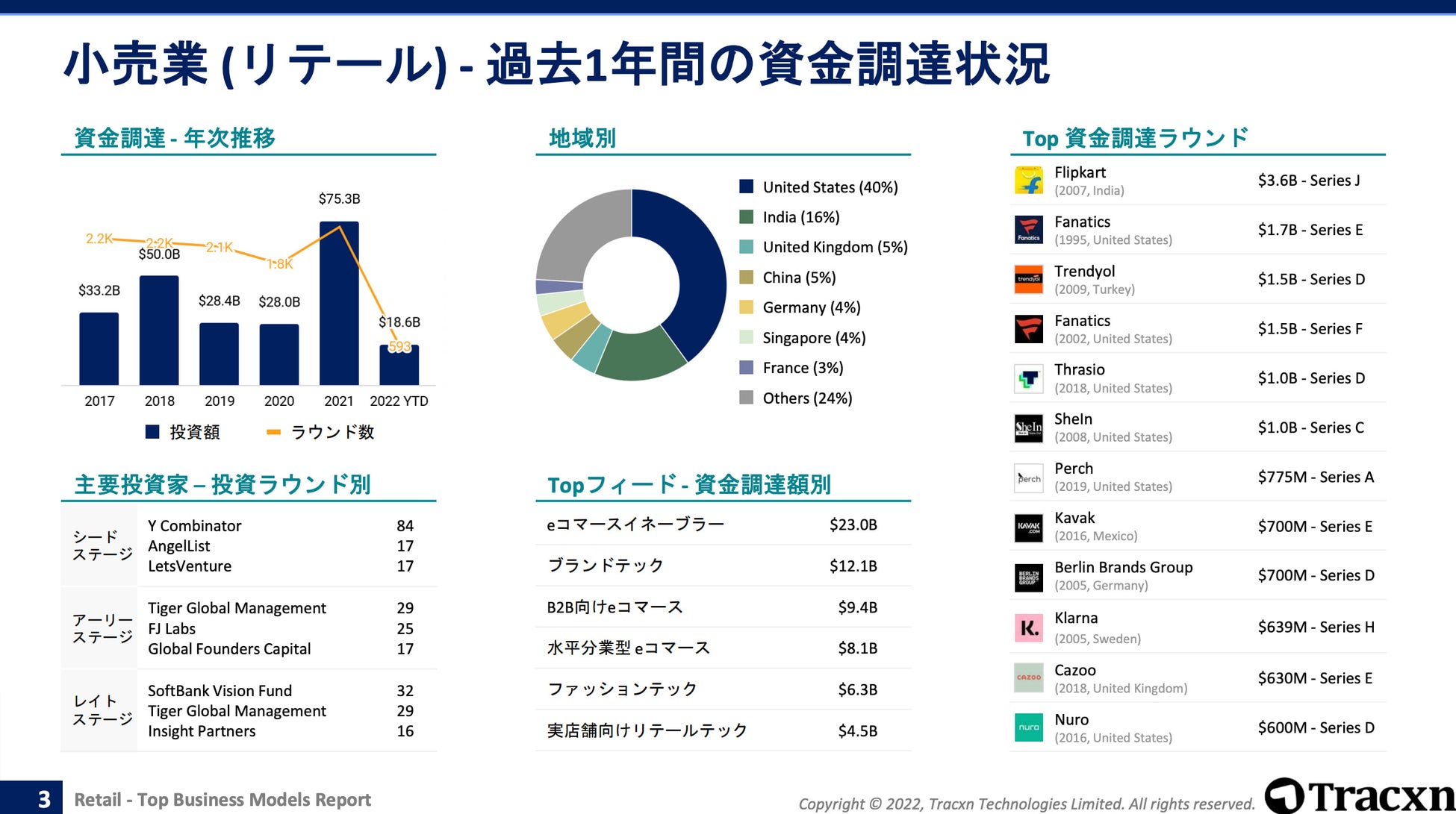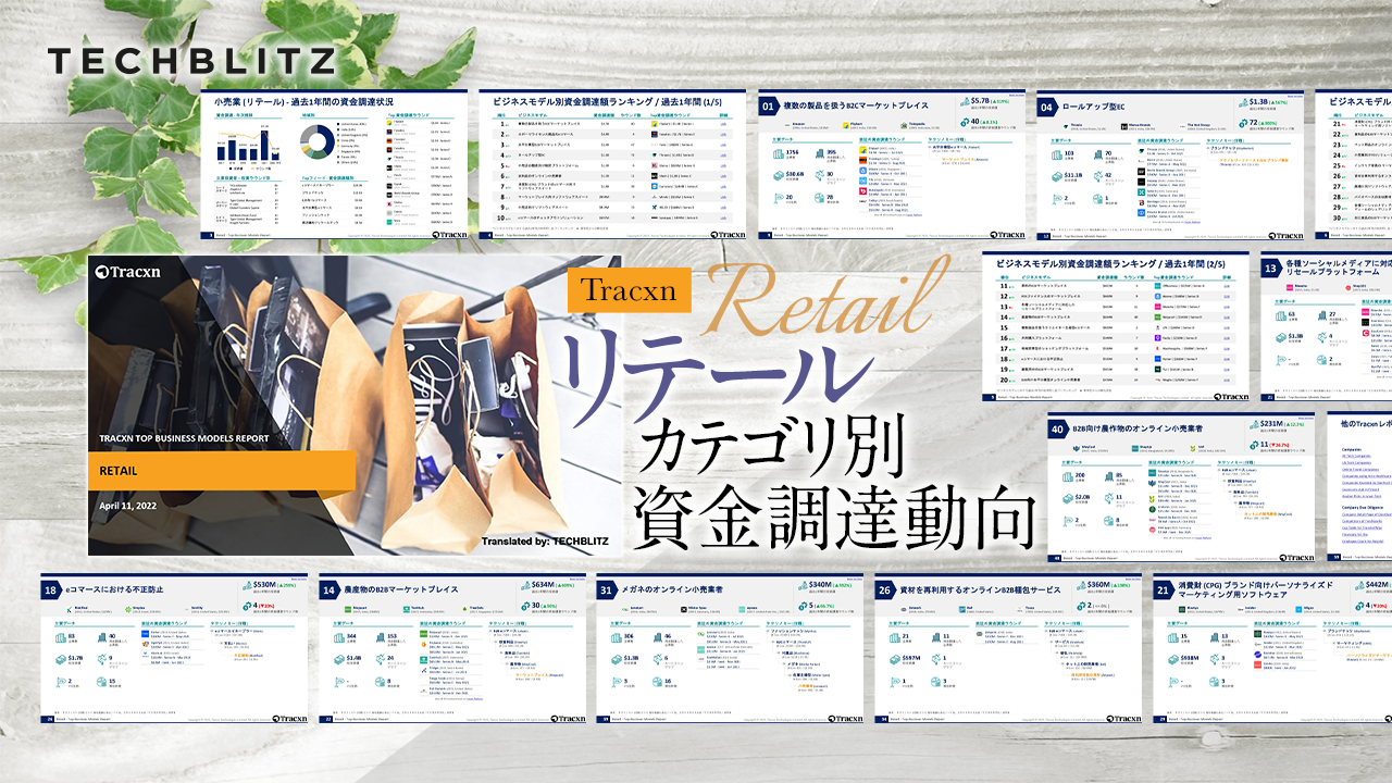 Tracxnとパートナーシップを結ぶTECHBLITZは今回、「リテール カテゴリ別資金調達動向」を日本語版でリリースいたしました。