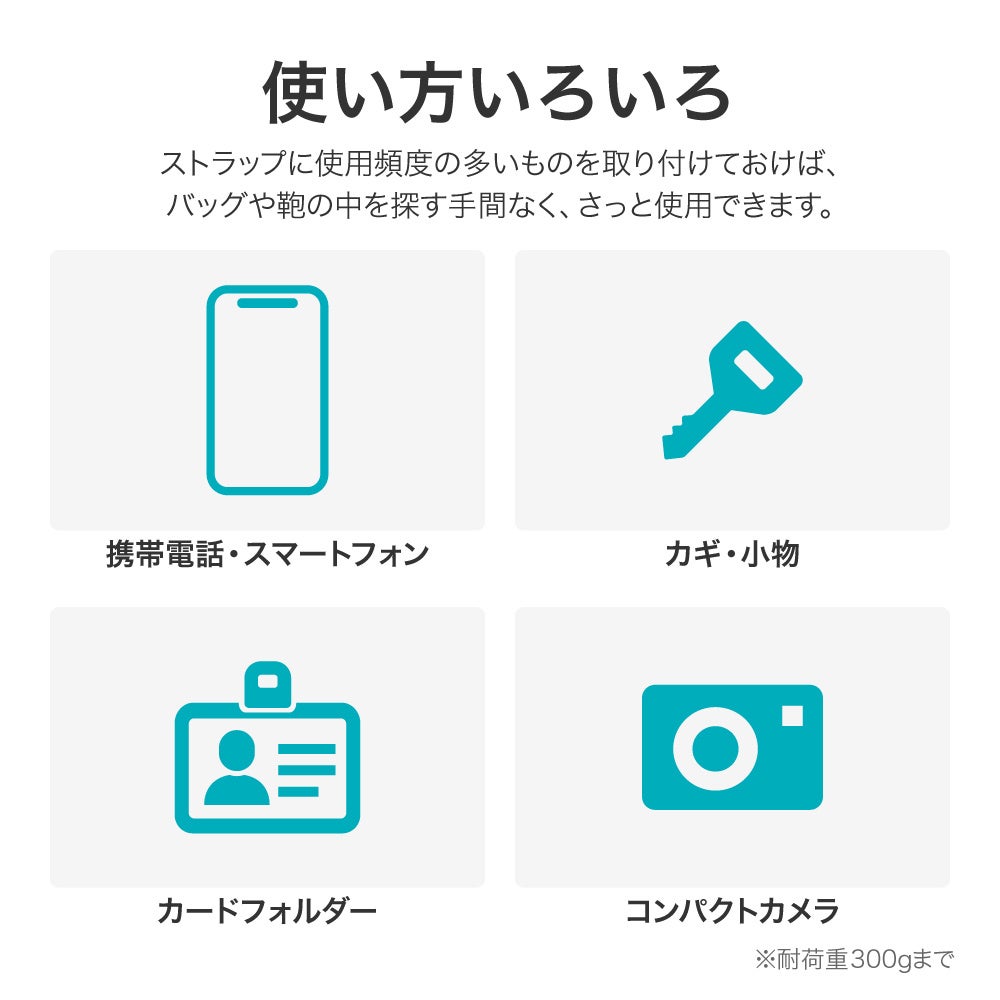 また一定の負荷がかかると外れる安全機構を搭載しているほか、ワンタッチで脱着できるストラップパーツ、ねじれ防止のスライダーなど、安全性にもこだわった便利な機能を備えています。