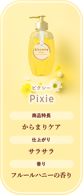 2021年3月に発売した&honey シルキーをよりパワーアップさせた &honey ピクシーはシリーズ史上、最高のサラサラ感※1に導く商品です。