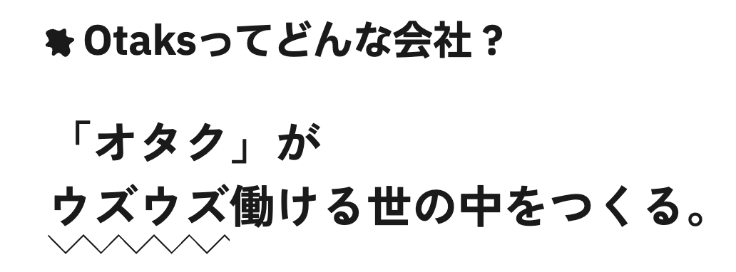 株式会社Otaksを通して、世の中の「オタク」がもっとウズウズ働ける社会をつくっていきます。