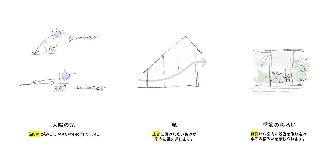 季節に合わせて太陽の光、風、景色を取り込む工夫