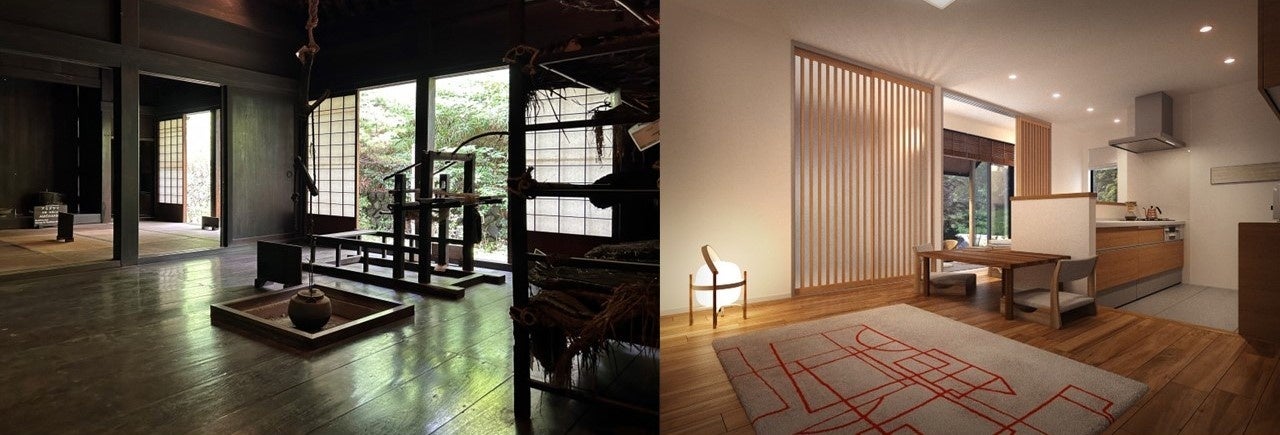 日本古来の民家の板の間(左)と「AME」の「いたのま」