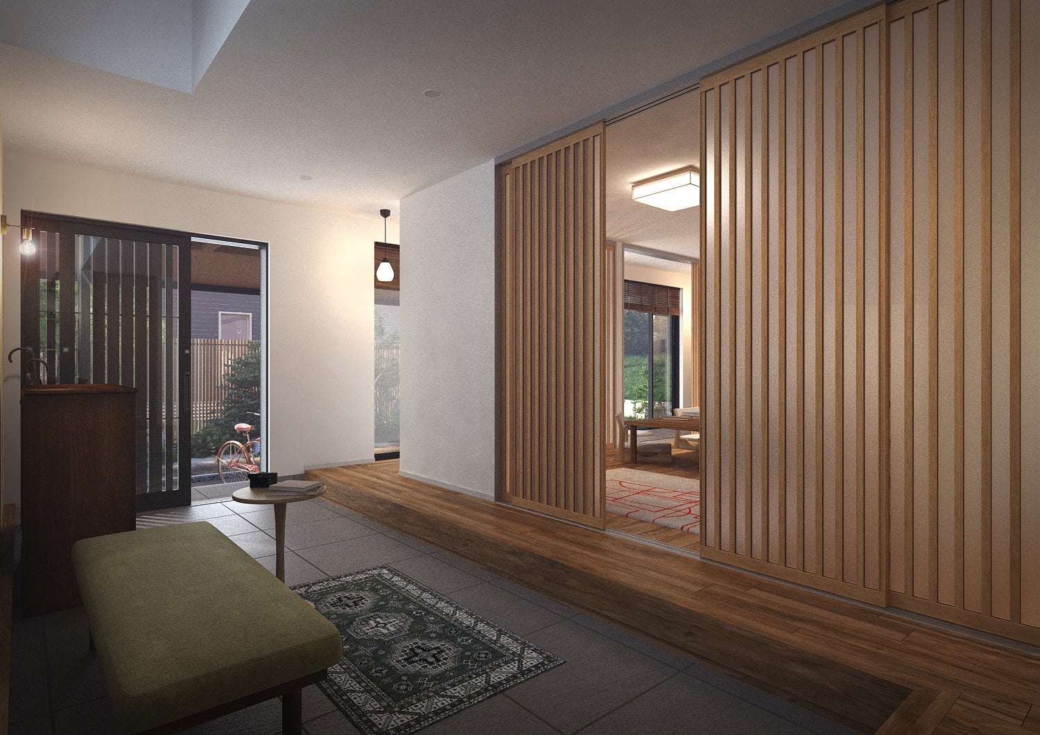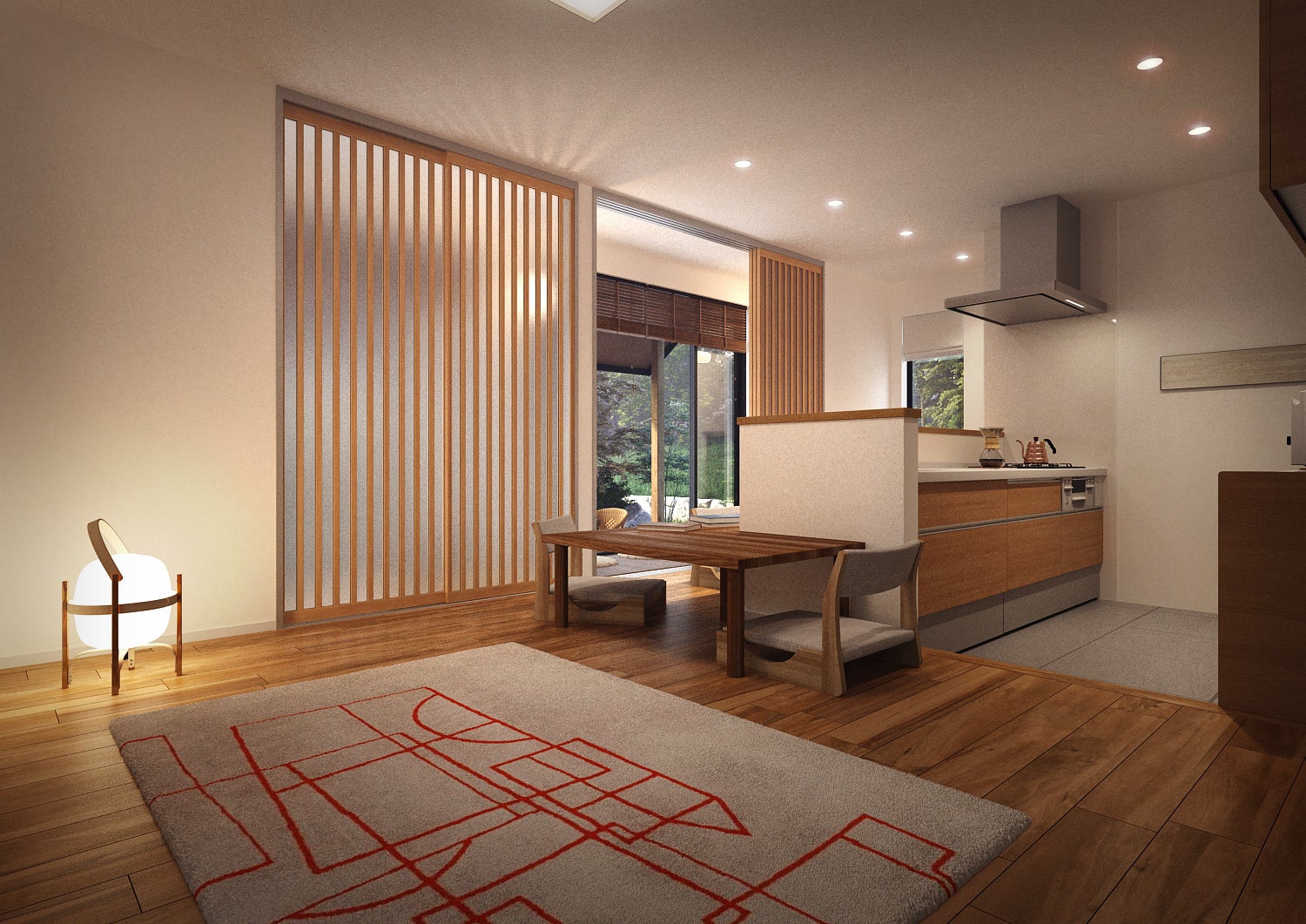 日本古来の暮らしの知恵を現代に活かし、四季折々の光と風を上手に取り込み、雨の日も自然の音を楽しみながら健康的で優しい暮らしが叶う家を提案。