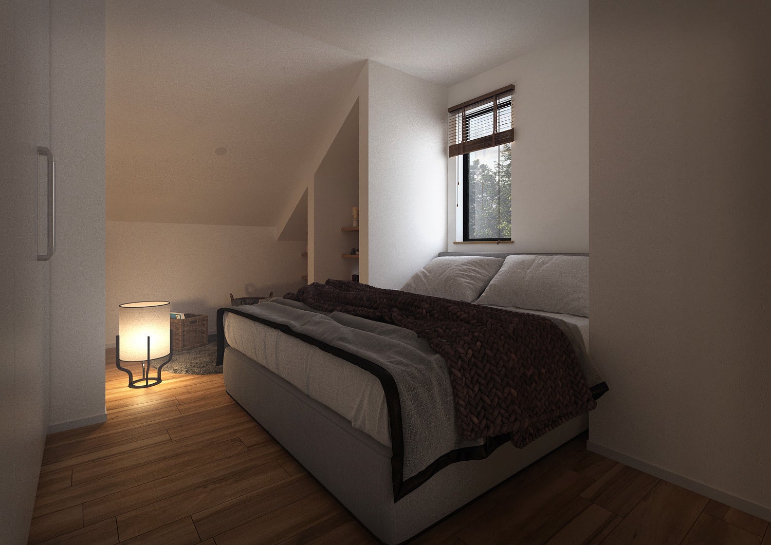 部屋の奥は、屋根の三角部分を最大限活かし、こじんまりとした居場所を用意しました。