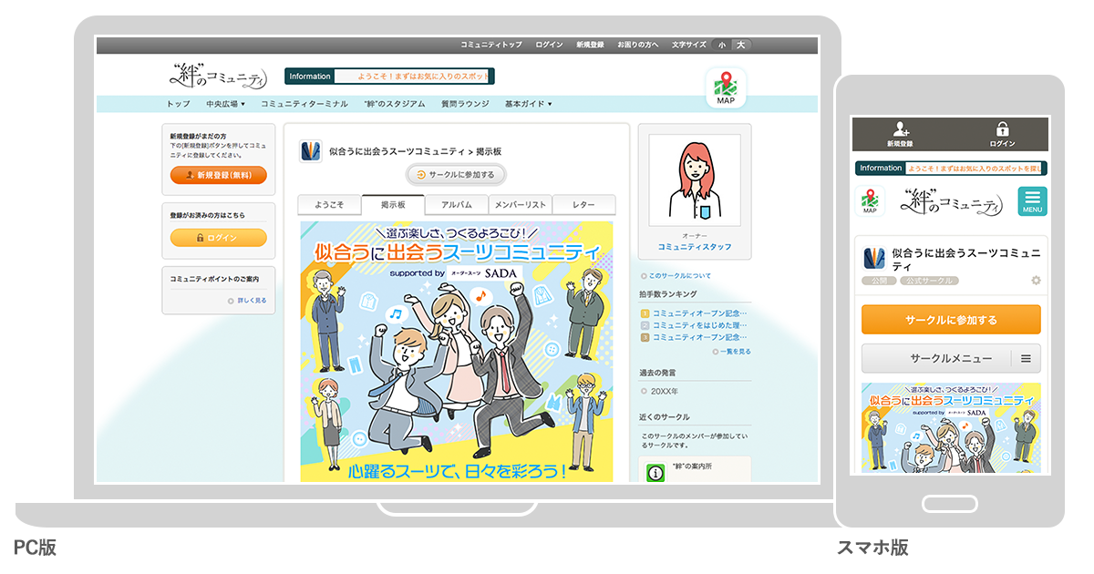 「似合うに出会うスーツコミュニティ」は「“絆”のコミュニティ」上に開設されました。「“絆”のコミュニティ」とは2020年1月に開設した、クオンが運営するオンライン上のファンコミュニティプラットフォーム。50以上の企業・自治体と200万人を超える生活者が集い、“絆”をテーマにした交流や、参画企業・団体のコラボレーション企画、双方向コミュニケーションから生まれる生活者の声をもとにした価値共創のイベントなどを実施しています。https://www.beach.jp/community/KIZUNA/