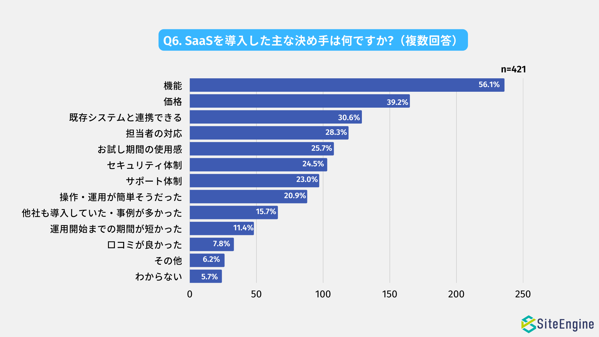 【SaaS導入と運用課題に関する調査】56%が「機能が決め手」と回答、「使いこなせていない」が39%