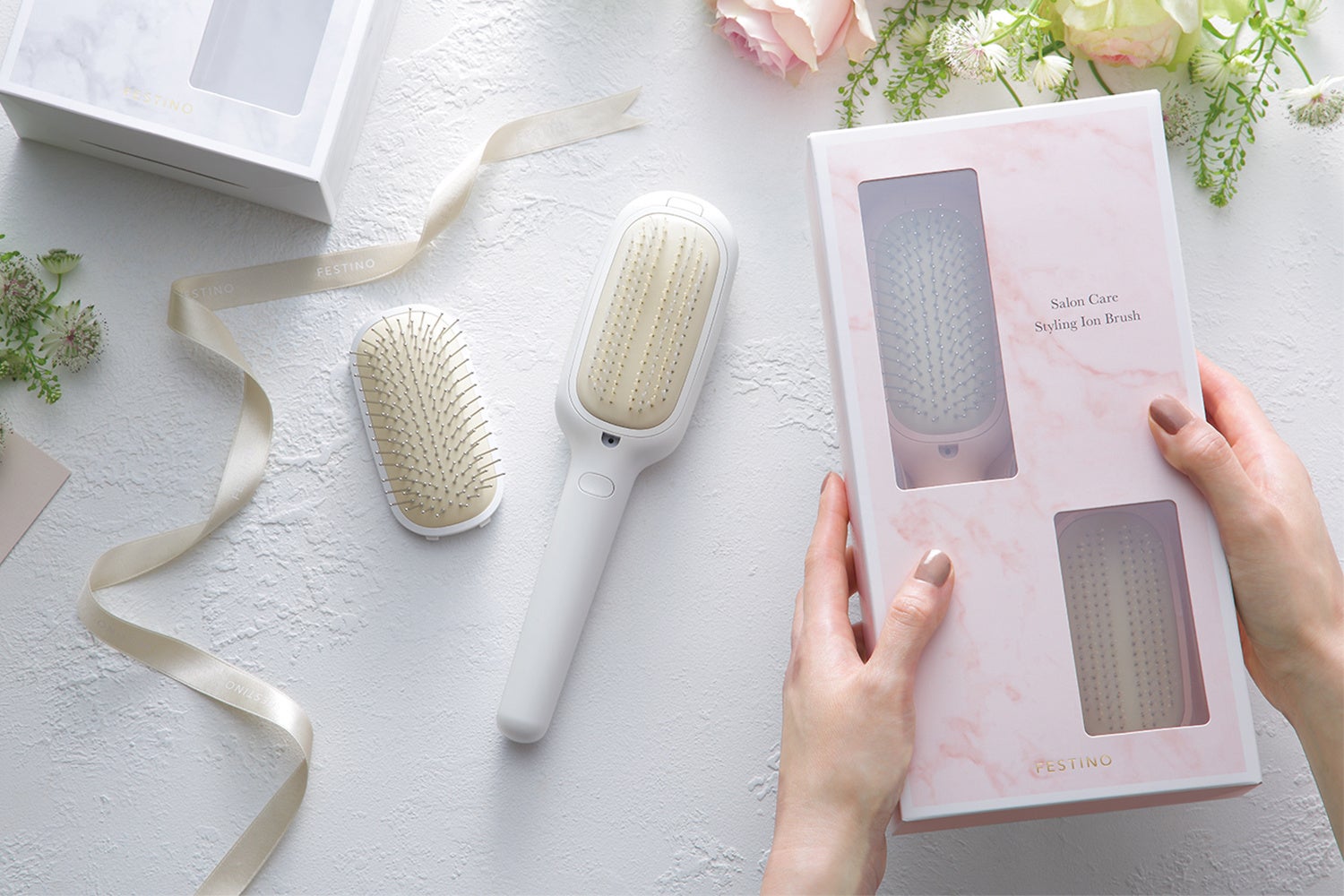 「FESTINO(フェスティノ)」から、ブラッシングするだだけでツヤのある髪へ導く[サロンケア スタイリングイオンブラシ]、[サロンケア クイックイオンブラシ]の2アイテムが新発売