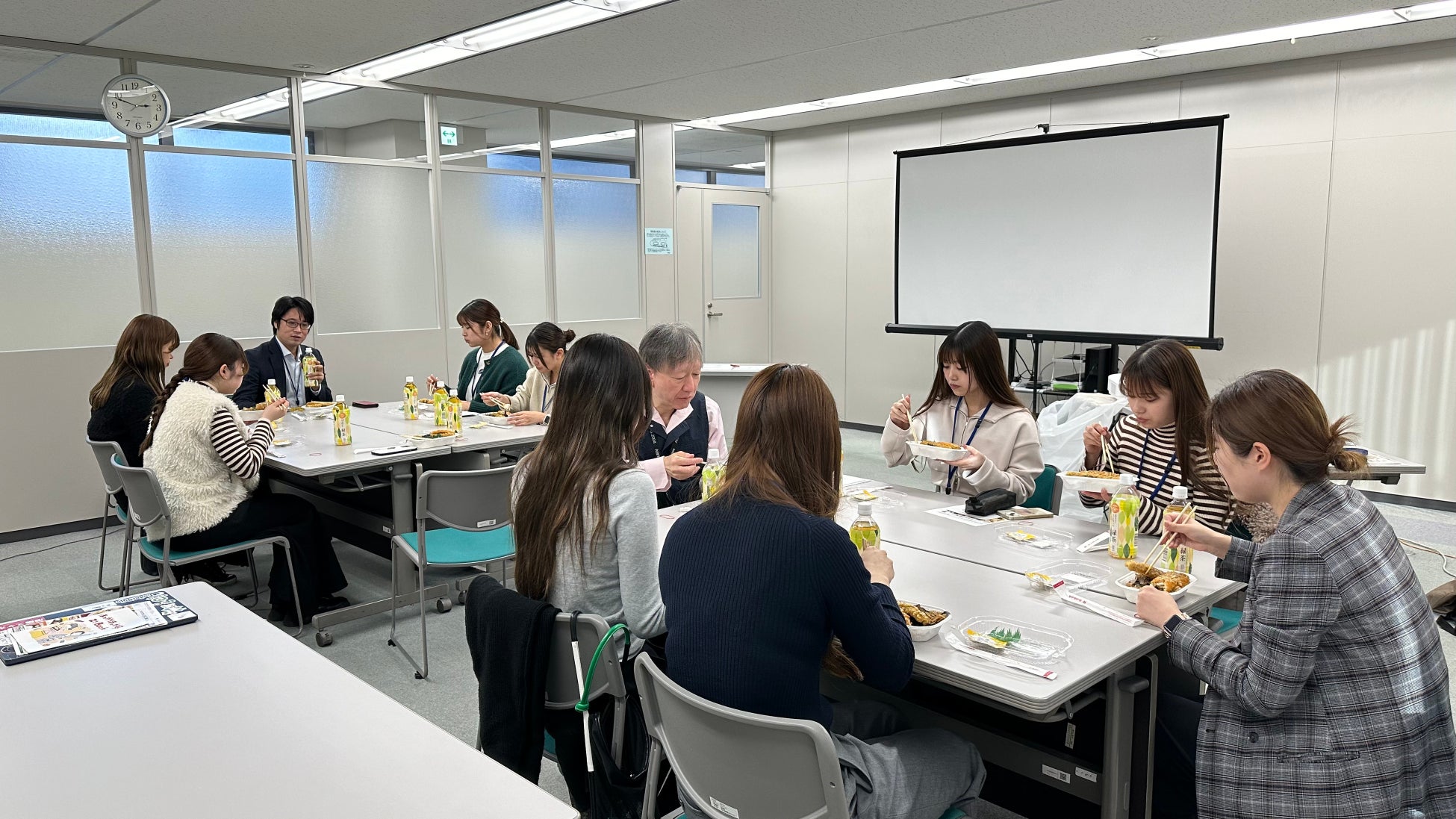 11月初旬にオリエンテーションを実施し、社内見学やほっかほっか亭が元祖である「のり弁当」の実食を行いながらの意見交換を行いました。食の選択肢が非常に多い現代で、改めて「のり弁当」を食べることでの発見や気づきなどをディスカッションしています。