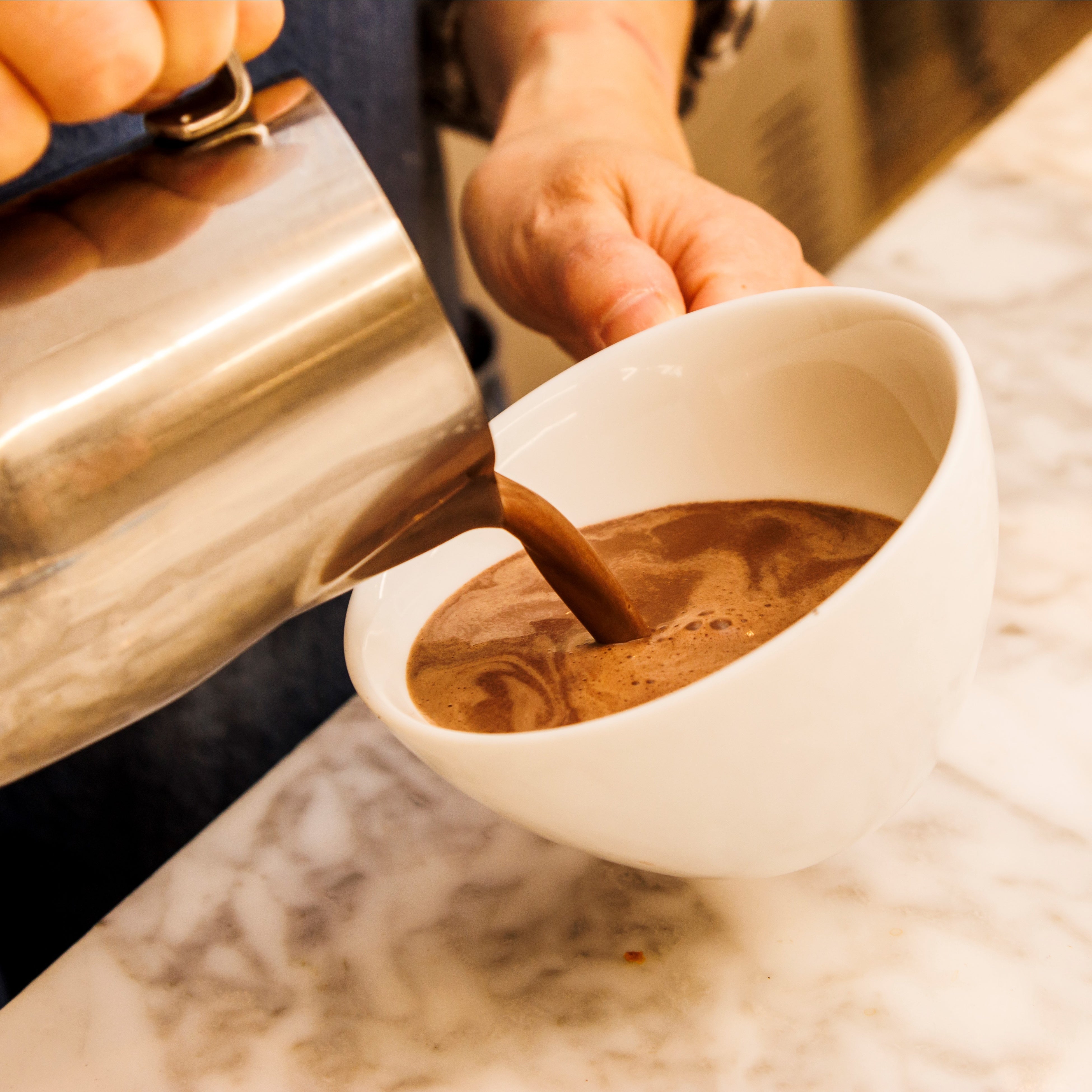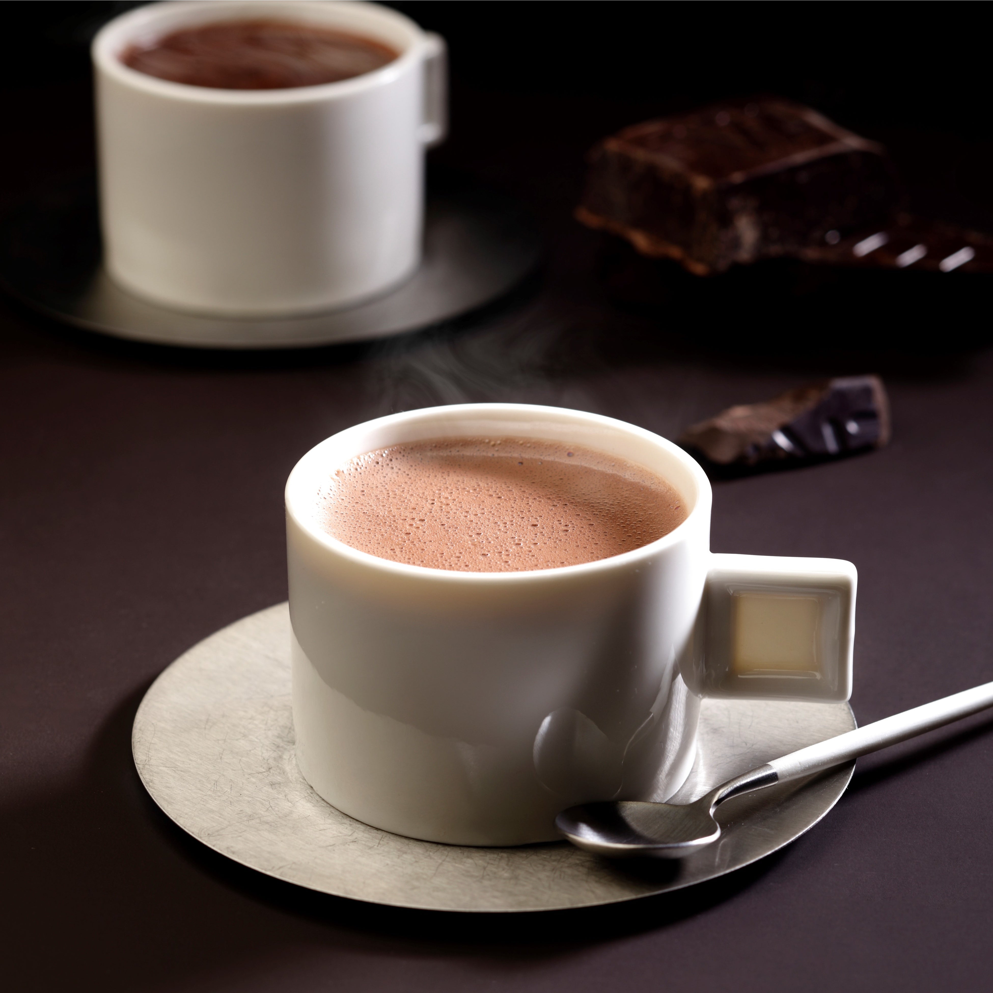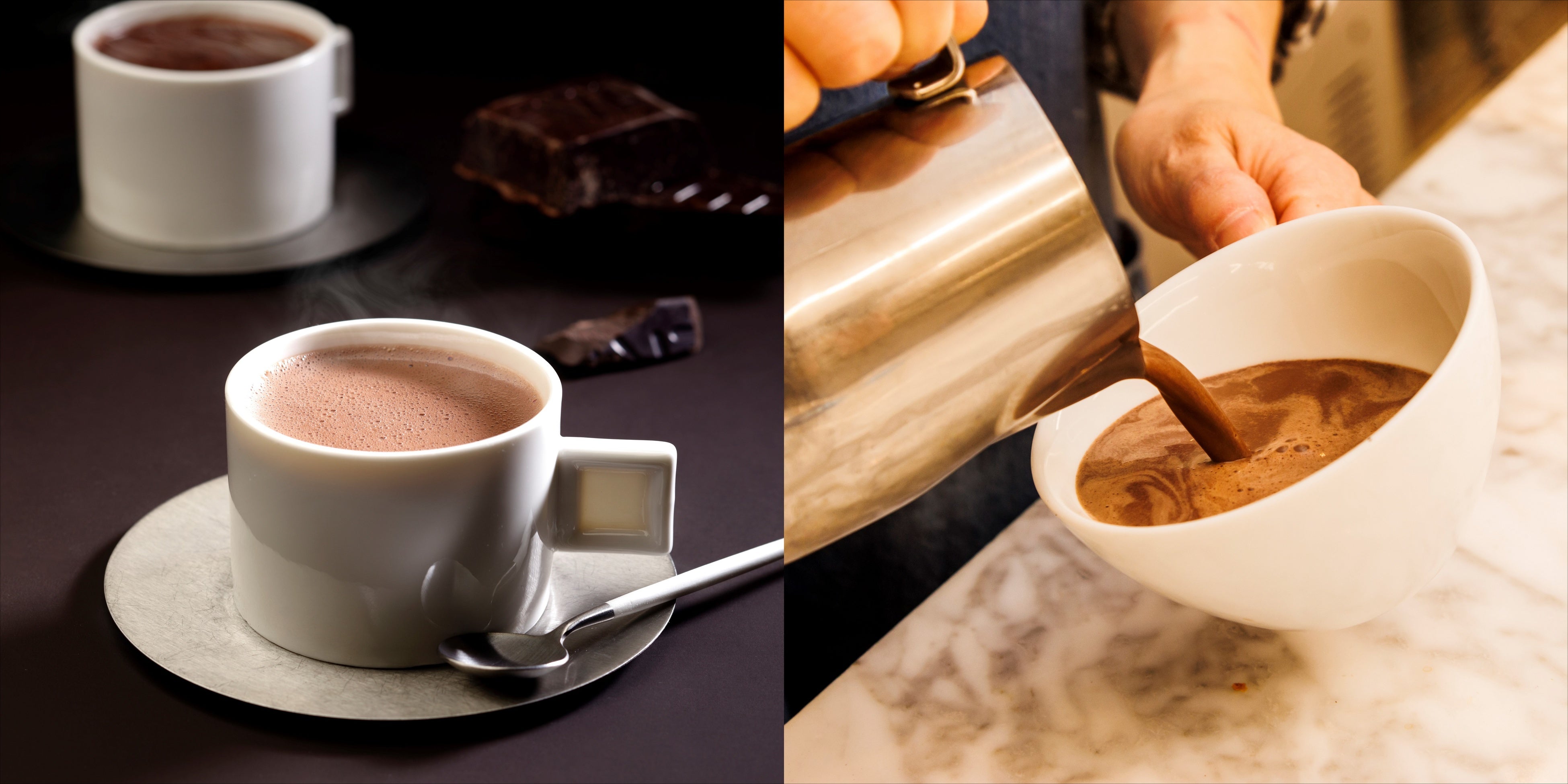 ヴァローナのカカオにミルクをブレンド、ほんのり香るオレンジがアクセントになった、この季節にぴったりの温かいチョコレートドリンクです。