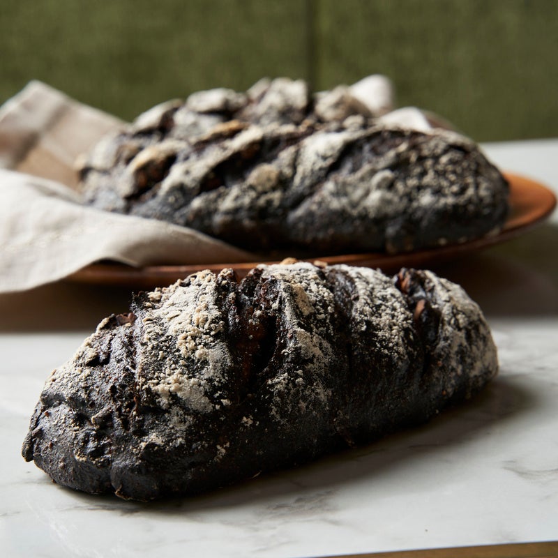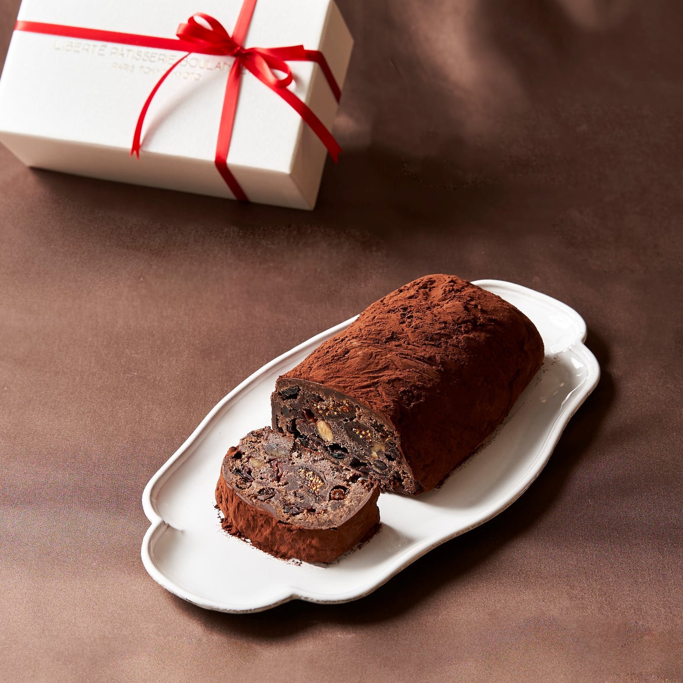 いちじくやレーズン等、8種類のドライフルーツやナッツに合わせ、ブランデーや赤・白ワインなど洋酒にじっくり漬け込み、カカオバリー®のショコラと自家製ルヴァン入りの生地に練り込み焼き上げ、さらにチョコレートとココアでコーティングした大人のバレンタイン限定のシュトーレンです。