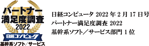 勘定奉行・奉行クラウドをはじめとする基幹業務システムを開発する株式会社オービックビジネスコンサルタント(代表取締役社長:和田 成史/本社:東京都新宿区、以下OBC)は、日経BP社発行のコンピュータ専門誌「日経コンピュータ」で行われている「パートナー満足度調査2022」の「基幹系ソフト/サービス部門」で、第1位を獲得いたしました。