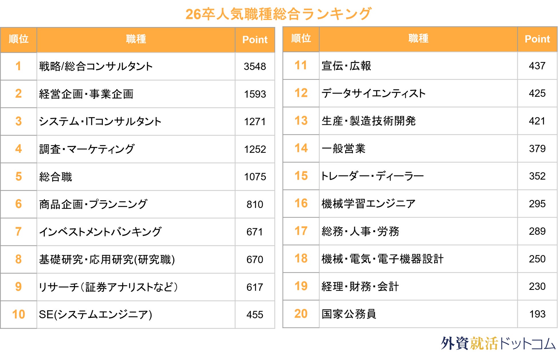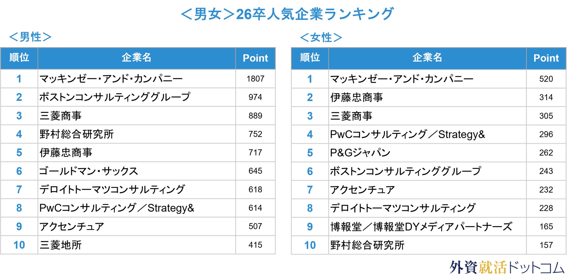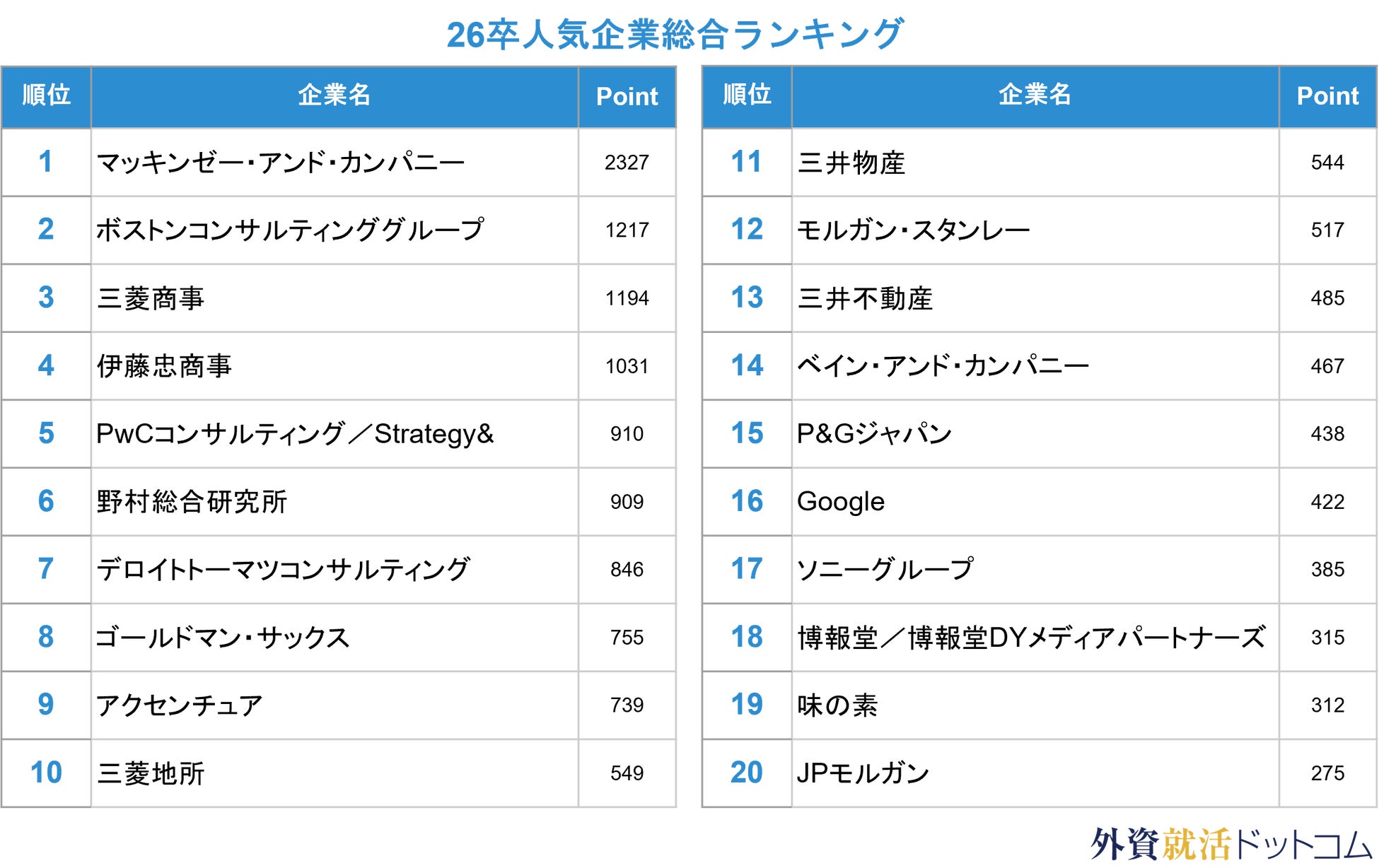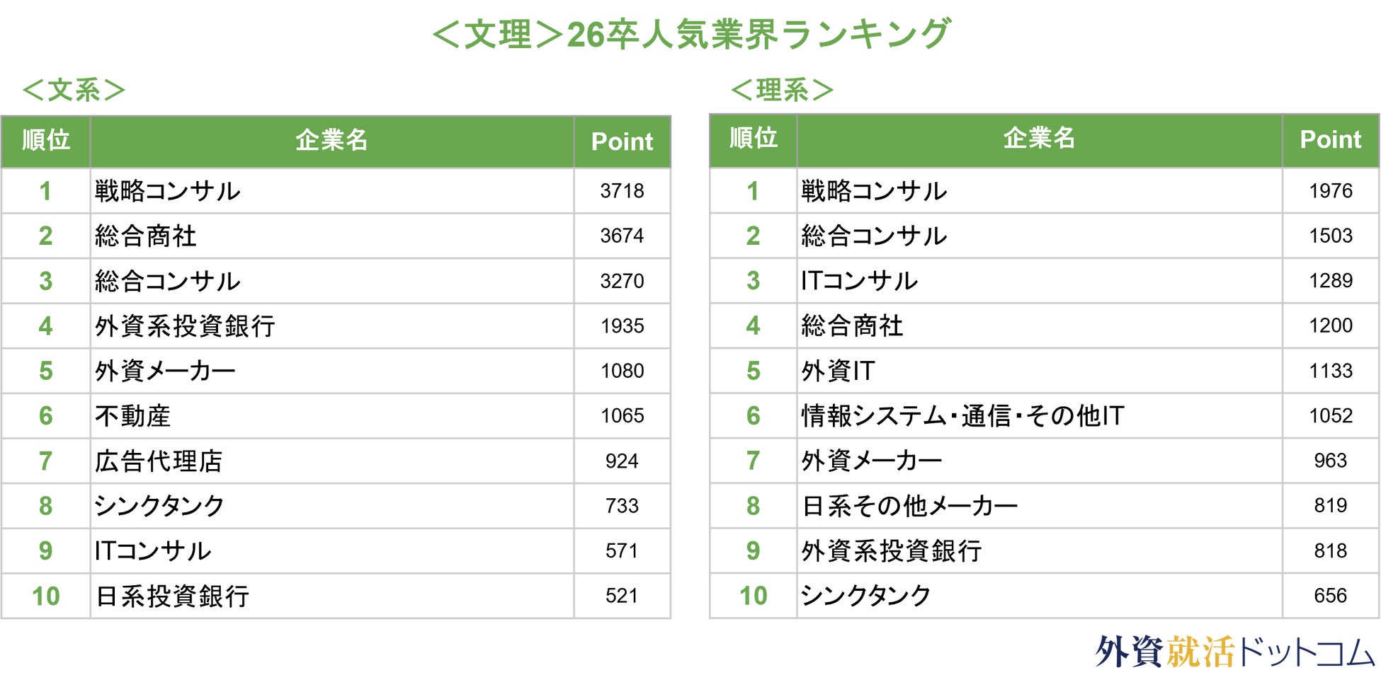 【外資就活ドットコム】「【26卒】上位校就活人気ランキング」を発表