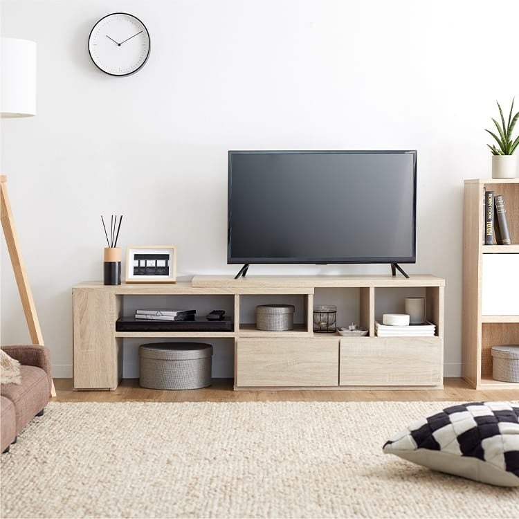 完成品で届くので組み立て不要なのも人気のポイント。ガラス越しにリモコンの電波が届くので、引き出しを閉めたままでリモコン操作が可能です。背面にはタップ収納付きなので、コードもすっきりと片付きます。同シリーズの大人気のアイテムはこちら。