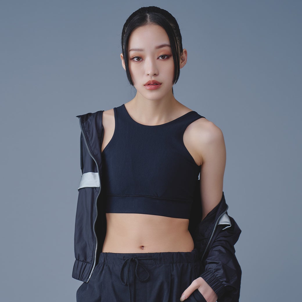 スポーツシーンに特化したバストフラットインナー。揺れにくく蒸れにくい構造で、アウターライクなファッション性の高さも魅力です。