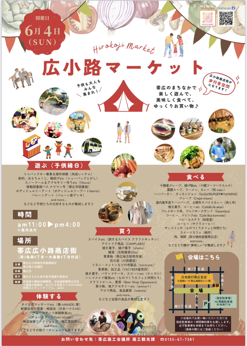 「広小路マーケット」では、帯広広小路商店街にて「こどもから大人まで楽しめる」をテーマに子供縁日や乗車体験コーナー等を開催しております。十勝の味覚をはじめ、全国から取り寄せた新鮮な農産物や贅沢な加工品がYACYBER直売所に集結します。全国のこだわりの生産者・販売者様に関する商品や情報を発信いたします。