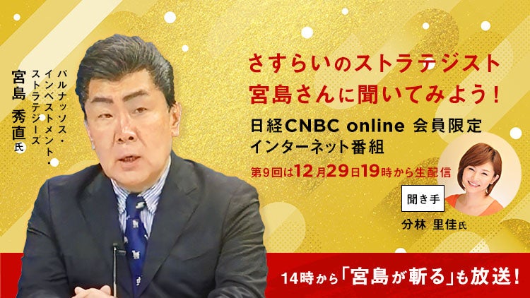 23年12⽉29⽇(金)は19時から⽇経CNBC onlineの会員に向けて、同日14時に放送する「昼エクスプレス『さすらいのストラテジスト 宮島が斬る!』」では語り切れなかったことをじっくり解説するほか、みなさんから寄せられた質問に時間が許す限りお答えします。