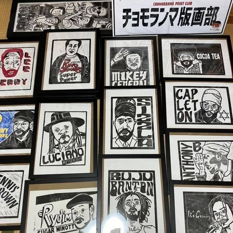 FAT SMITH氏による、レゲエアーティストの版画の販売、お子様向けぬり絵の体験(無料)など。