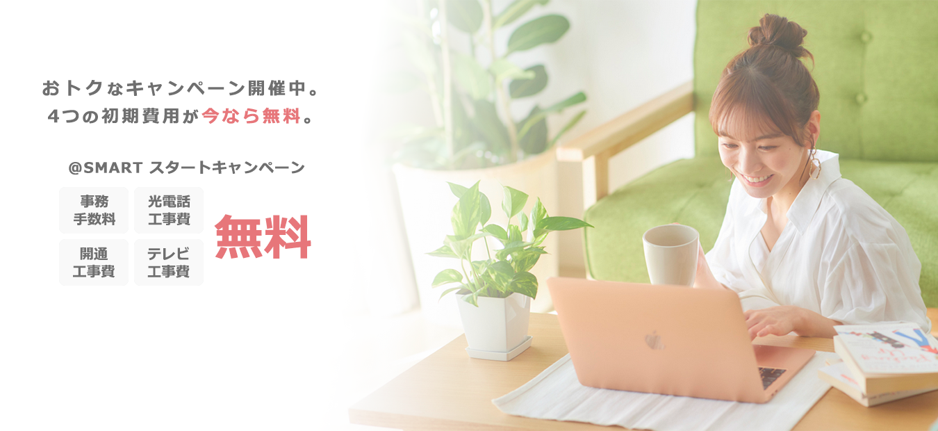 @スマート光では「@スマート スタートキャンペーン」(以下、本キャンペーン)を実施中で、最大19,800円の初期工事費と事務手数料3,300円を無料にいたします。